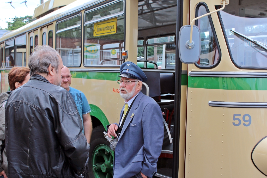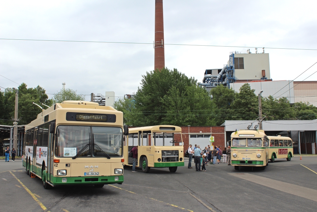 Daniel Kistner vom Obus-Museum Solingen e.V. erklärte am Wochenende auf dem Betriebshof der Stadtwerke an der Weidenstraße, dass der Solinger Obusbetrieb mit 50 Fahrzeugen mit Abstand der größte in der Bundesrepublik sei. Die letzten beiden anderen verbliebenen Betriebe findet man in Esslingen und Eberswalde.