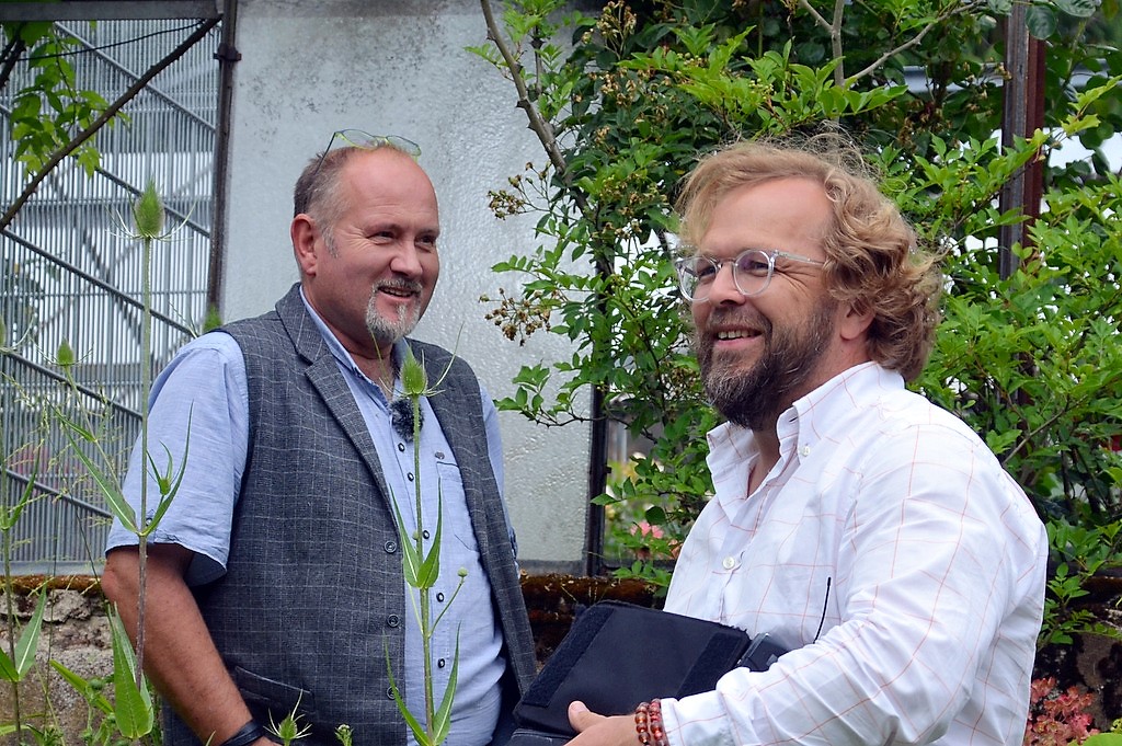 MDR-Garten ist eine erfolgreiche und zugleich die älteste Gartensendung des MDR. Im August wird sie 20 Jahre. Wöchentlich wird über die verschiedensten Gartenthemen berichtet. „Zwei Mal im Jahr machen wir eine Gartenreise, die auch ins Ausland führt“, erzählt Mitarbeiterin Jana Eschrich. Eigentlich hatte Wales auf dem Programm gestanden, was aber durch die Corona-Pandemie verschoben werden musste. So ergriff man kurzerhand die Gelegenheit und kam nach Solingen. Die Sendung sei an sich nicht monothematisch, so Eschrich. Kleine Abschweife in andere Themenbereiche kämen immer wieder vor. „Aber hier findet man ja alles an einem Fleck.“