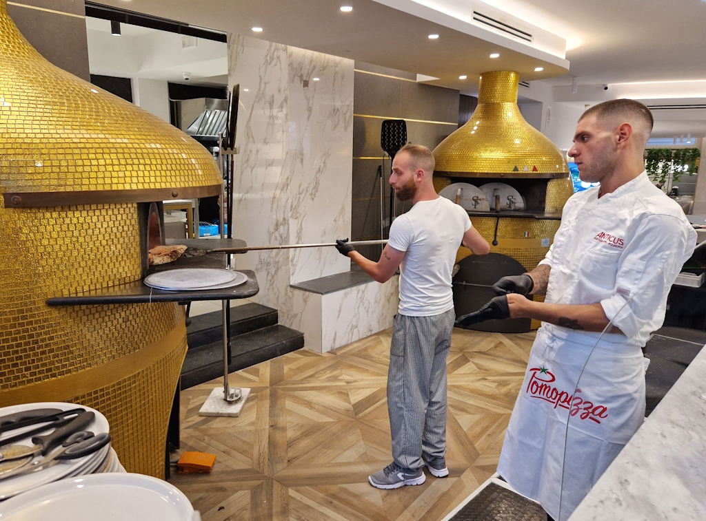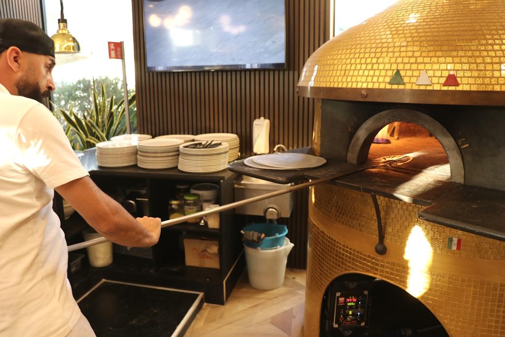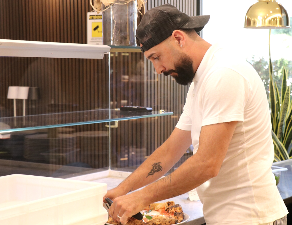 Manager Nino Lombardi erklärte uns dabei auch die Grundlage, auf der jede Kreation beruht: „Jede Pizza beginnt für uns mit dem richtigen Teig – 48 bis 72 Stunden gereift, mit hochwertigen Mehlen und manchmal Kurkuma oder Aktivkohle verfeinert.“ Während wir dem Team bei der Arbeit zusahen, wurde schnell klar: Hier steckt nicht bloß Routine dahinter, sondern echtes Handwerk – fast schon Performance.