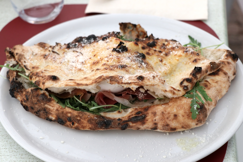 Natürlich führte unser erster Griff zur Karte zur Pizza. Besonders beeindruckt hat uns die „Nuda e Cruda“: 125 g Büffelmozzarella, Tomatini Datterini, Rucola, 18 Monate gereifter Parmaschinken und Grana Padano, serviert auf einem vorgebackenen Teig in offener Form („ripieno aperto“). Eine moderne Variation, die dennoch tief in der Tradition verwurzelt ist – frisch, klar und unglaublich aromatisch.