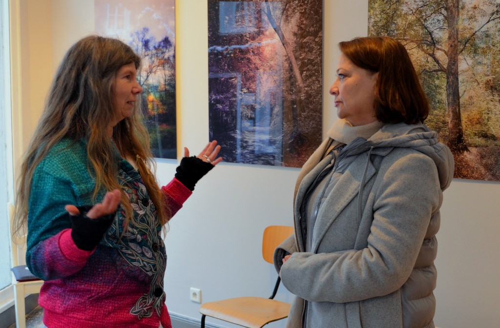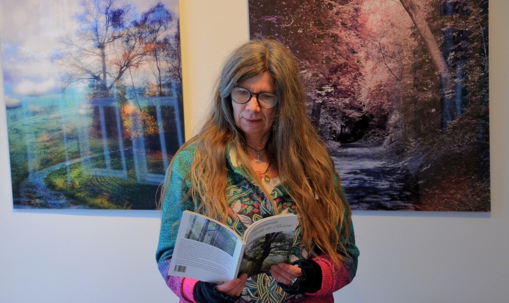Anschließend übernahm Autorin Saga Grünwald das Wort und stellte ihr neues Buch „Die Mystik der Bäume“ vor. Sie zeigte sich sichtlich erfreut über die Verbindung von Lesung und Ausstellung und führte das Publikum behutsam in die Entstehung ihres Werkes ein. Über mehrere Jahre habe sie sich intensiv mit überwiegend heimischen Waldbäumen beschäftigt, erklärte sie, mit ihren Eigenschaften, den dazugehörigen Bräuchen und ihrer Rolle in Sagen und Märchen, insbesondere der keltischen und germanischen Mythologie. Als ausgebildete Druidin im Orden der Barden, Ovaten und Druiden hätten Bäume für sie einen besonders hohen Stellenwert.