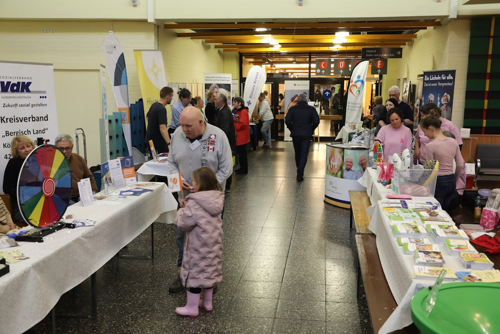 SOLINGEN (bgl) – Am Samstag fand im Städtischen Klinikum Solingen erneut der Selbsthilfe- und Gesundheitstag statt, zu dem mehr als 40 Selbsthilfegruppen und Beratungsangebote aus unterschiedlichen Themenbereichen in der Eingangshalle des Klinikums zusammenkamen. Besucherinnen und Besucher hatten die Möglichkeit, sich niedrigschwellig und praxisnah zu Themen wie chronischen und akuten Erkrankungen, Pflege, psychischer Gesundheit, Familienunterstützung, Ernährung oder sozialer Teilhabe zu informieren, ins Gespräch zu kommen und neue Anlaufstellen kennenzulernen. Neben Informationsmaterialien und Beratungsgesprächen wurden auch praktische Mitmachangebote bereitgestellt, die den Tag zu einem lebendigen Forum des Austauschs machten.