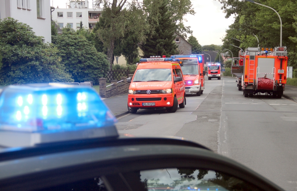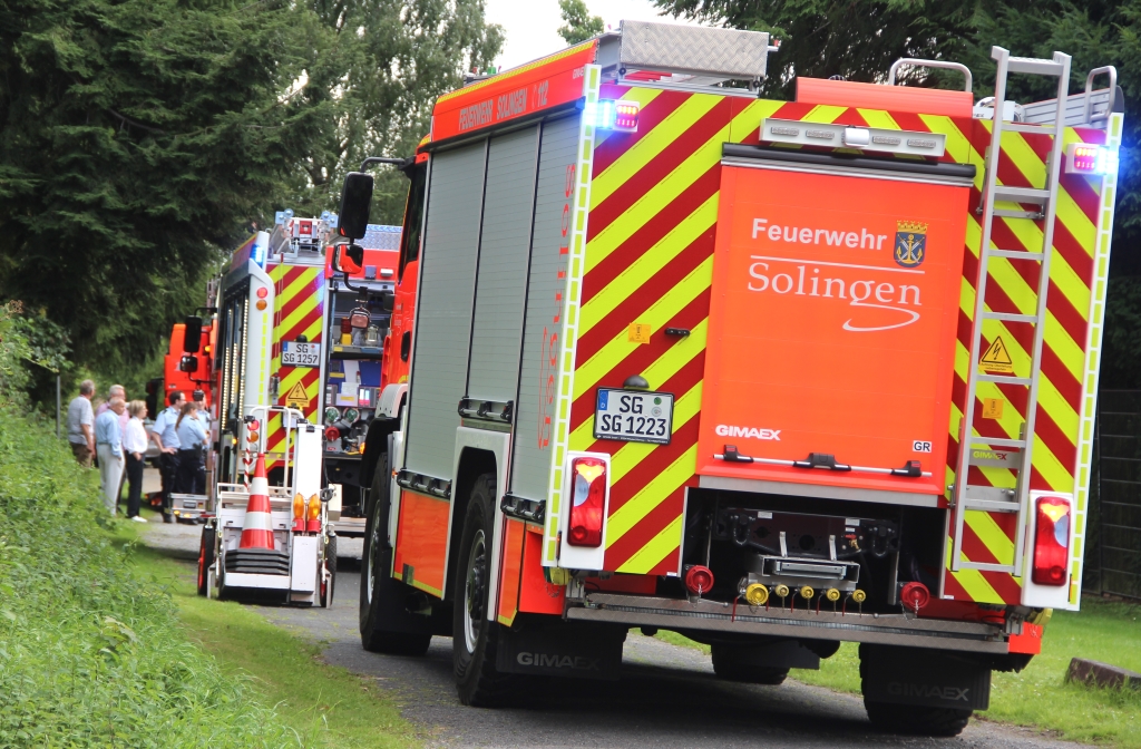 SOLINGEN (bgl/red) – Am frühen Abend rückte die Feuerwehr zu einem Brandeinsatz an die Düppelstraße in Wald aus. Dort brannte es in der Zwischendecke und der Fassade eines Einfamilienhauses. Ursache dafür war ein Wespennest, das der Hausbewohner abbrennen wollte. Mit zwei Strahlrohren konnte das Feuer schnell von den Einsatzkräften unter Kontrolle gebracht werden. Hierzu mussten die Zwischendecke und die Fassade geöffnet werden.