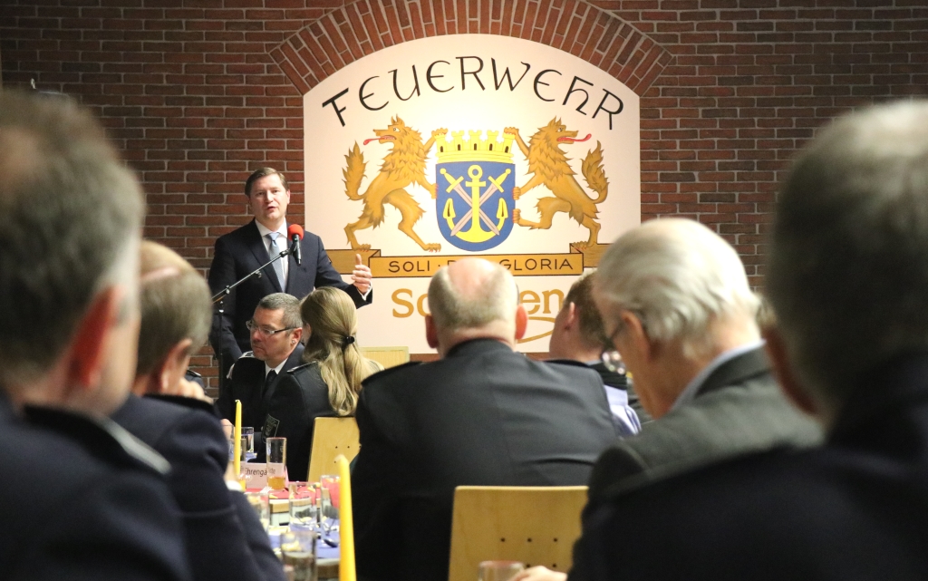 „Es geht bei diesem Ehrenabend deshalb auch nicht nur darum, dass wir uns gegenseitig wertschätzen, sondern das wir aus diesem Abend heraus auch ein Signal an die Bevölkerung senden: Zusammenhalten wie unsere Feuerwehr! Das kann auch ein Signal für eine ganze Stadtgesellschaft sein“, lobte der Oberbürgermeister.