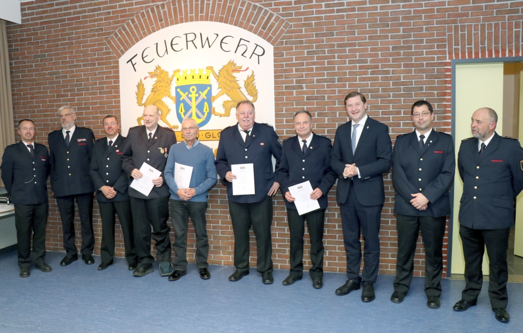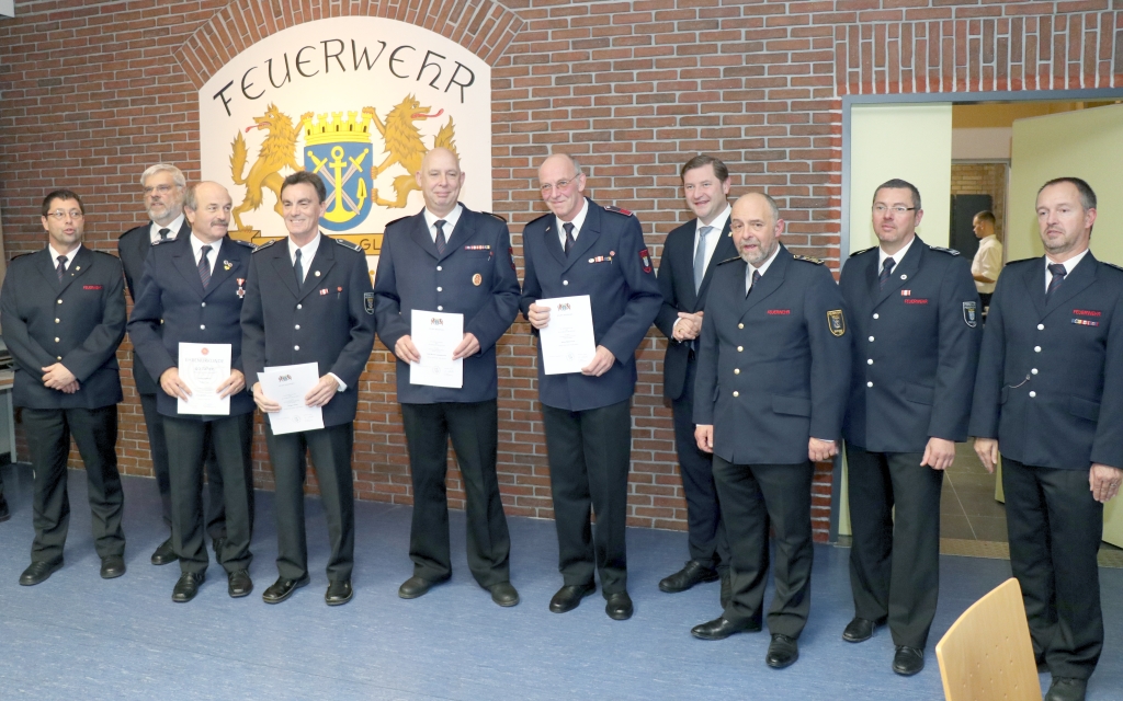 Hauptbrandmeister Klaus Bittner, Hauptbrandmeister Klaus Butterweck, Hauptbrandmeister Rolf-Bernd Golombjewski, Zugführer Volker Nass, Brandinspektor Jürgen Sticht.