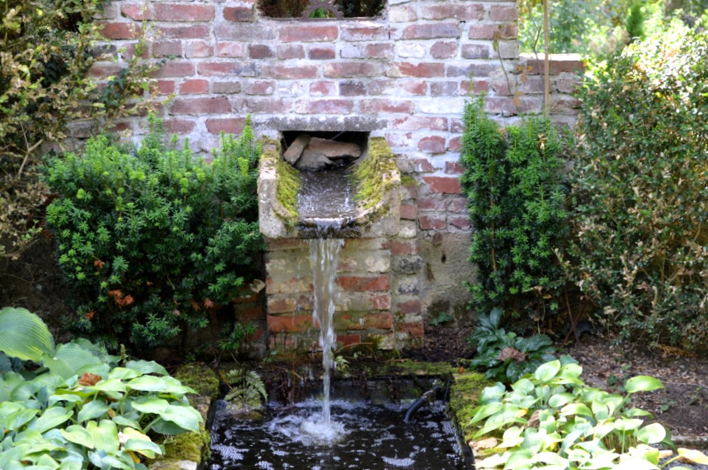 Auf der Außenseite der Mauern ist gleich unterhalb des Fensters ein Brunnen aus dem Elsass aufgebaut. Er stammt aus dem 17./18. Jahrhundert und war früher Bestandteil eines Klosters. Der Klostergarten ist nicht nur ein Ort der Ruhe und Schönheit, sondern auch ein Ort der Erinnerung. Jedes Element des Gartens erzählt eine eigene Geschichte und trägt zur Gesamtheit der meditativen Stimmung bei.