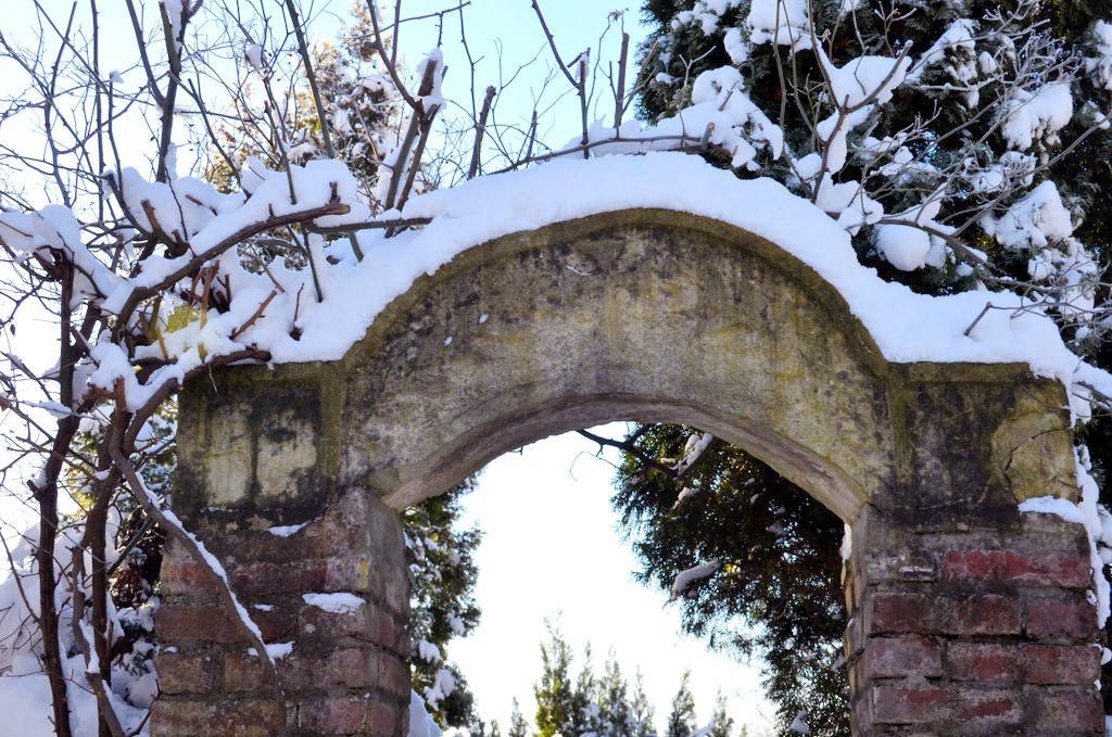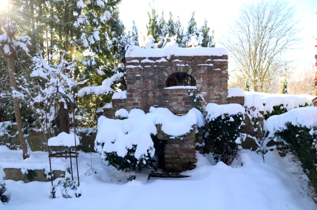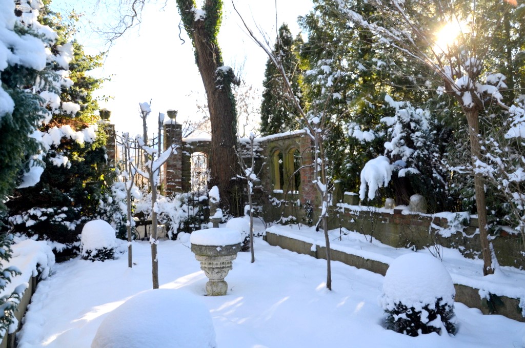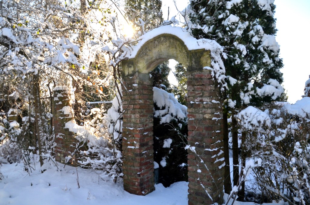Noch liegt der Klostergarten unter einer Schneedecke. Doch bald wird die winterblühende Clematis ihre ersten Knospen öffnen. (Foto: © Martina Hörle)