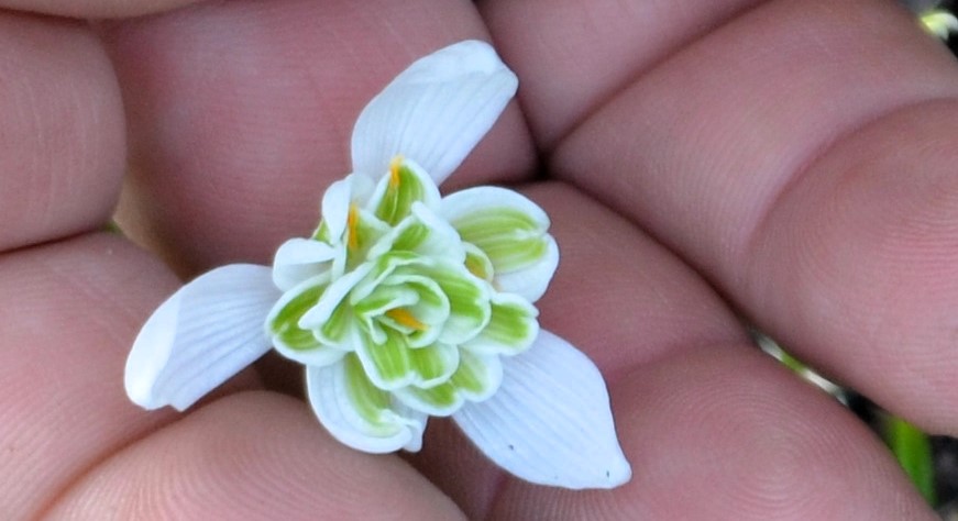 Die Frühblüher zeigen oft schon zu Weihnachten ihre weißen Köpfchen. Andere warten bis Februar/März. Die Sarah Dumond ist eine rundliche weiß-gelbe Blüte mit gelblichem Fruchtknoten. Die Walrus dagegen trägt weiß-grüne Blütenblätter mit kräftigen grünen Zeichnungen auf den äußeren Bereichen. Lady Elphinstone ist eine zauberhafte gefüllte gelbe Variante und das bisher einzige bekannte gefüllte gelbe Schneeglöckchen. Wie es bei Ladies üblich ist, wechselt auch diese hin und wieder ihr Kleid. Dann wird aus dem Gelb ein zartes Limettengrün. Auch in ein und demselben Horst sind die Blüten unterschiedlich. In ihrer Vielfältigkeit zeigen die zarten Pflanzen oft krasse Unterschiede in Laubgröße und –färbung. Die Genetik weist eine beachtliche Mobilität auf. Mittlerweile sind Schneeglöckchen tatsächlich beliebte Sammel- und Zuchtobjekte geworden. Es gibt Zwiebeln, für die Sammler mehrere hundert Euro bezahlen.