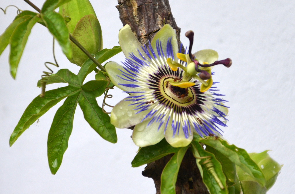 Der Seidenbaum (Albizie) lässt seine filigranen Blätter im Wind tanzen und verleiht dem Freiluft-Raum eine lebendige Atmosphäre. Er gehört zur Familie der Mimosengewächse und ist auch als Seidenakazie oder Schlafbaum bekannt. Die chinesische Dattel blüht bereits. Später bildet sie orange bis rote Steinfrüchte mit einem süß-säuerlichen Geschmack. Auf dem Boden blühen spanische Gänseblümchen in zauberhaften weißen Blüten und sorgen für einen fröhlichen Kontrast.