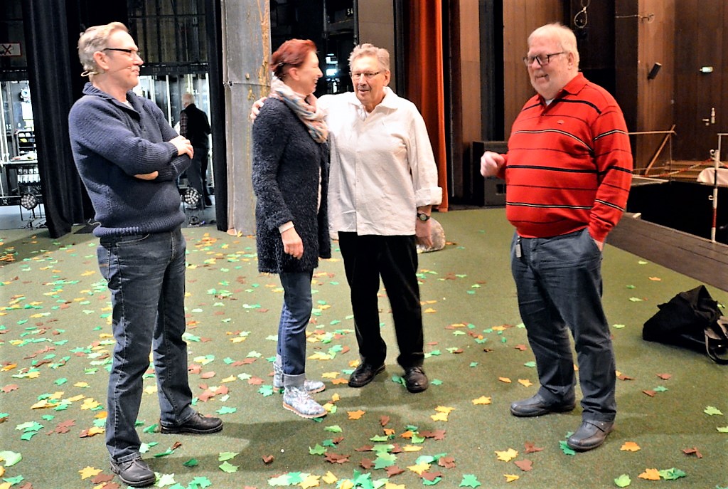 Renate Kemperdick spielt den Puck in diesem Stück. „Der Puck ist eine tolle Rolle“, strahlt die quirlige Darstellerin. „Er ist so witzig. Die Kinder müssen ihn einfach lieben.“ „Und die Kinder lieben Renate“, ergänzt Regisseur Michael Tesch. Jürgen Nippel spielt den „Zettel“ in dem Stück. Er arbeitet bereits seit 13 Jahren mit Tesch zusammen. „Er hat für mich immer genau die richtige Rolle ausgesucht“, sagt Nippel. Und er erinnert sich gerne an die erste Aufführung „Galgenrecht“, geschrieben von Heidi Theunissen, aufgeführt 2004 in der alten Zollhalle im Südpark.