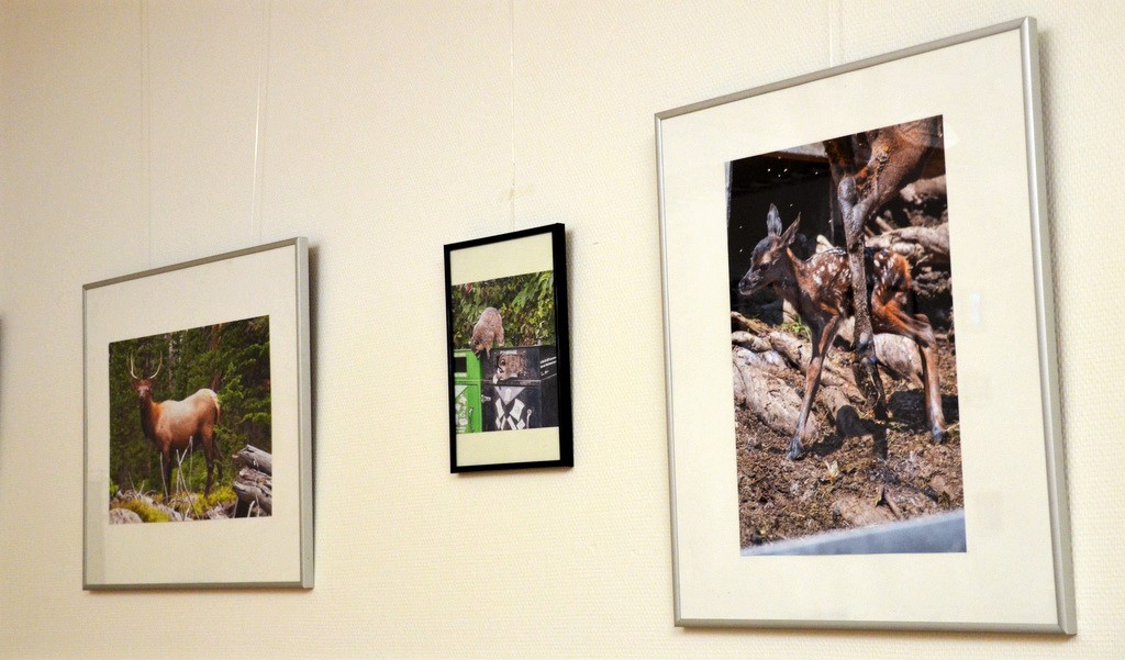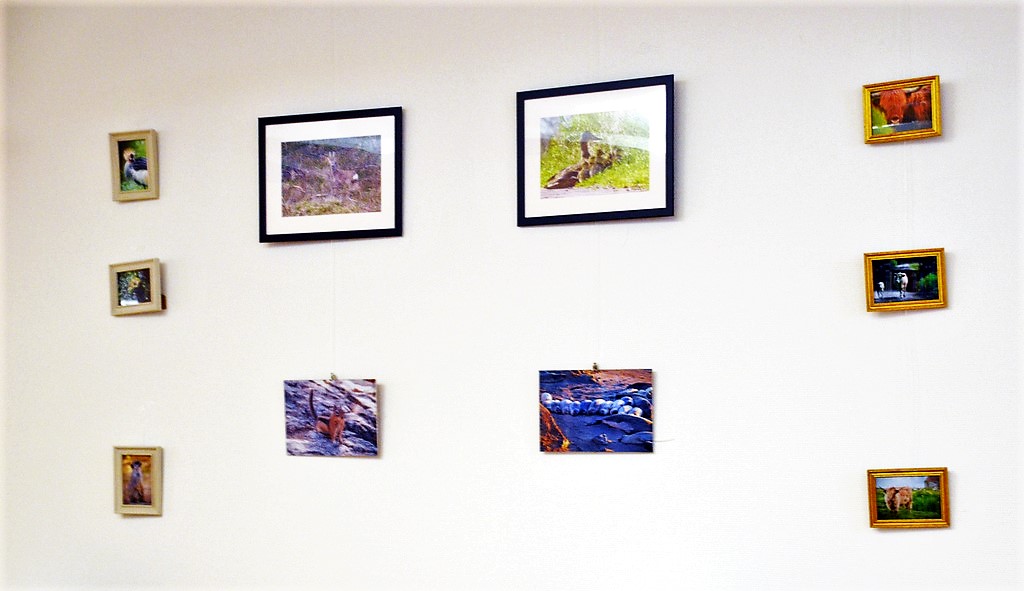 Abgesehen vom Thema „tierisch“ gab es keine festen Vorgaben. So haben manche Aussteller sich auf ein Bild beschränkt, andere dagegen konnten in ihrem Archiv aus dem Vollen schöpfen. Neben Fotografien im Hoch- und Querformat, gerahmt und ungerahmt, hinter Glas oder auf Keilrahmen, gibt es auch zwei gemalte Darstellungen, ein Aquarell von Jasmin Kohnke und eine Acrylmalerei von Andrea Steinmüller.