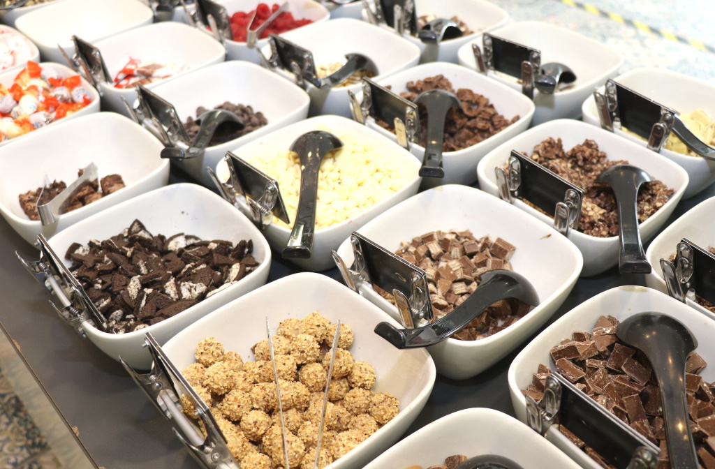 „Wir machen unseren Frozen Yogurt jeden Tag ganz frisch mit fettarmen Jogurt und Milch. Wir bieten drei verschiedene Varianten an, darunter auch einen veganen Frozen Yogurt“, sagt der 42-jährige Gastronom. Seine Kundinnen und Kunden können aus einer Vielzahl von Toppings wählen, die ihrem Frozen Yogurt schließlich die ganz besondere Note geben sollen.