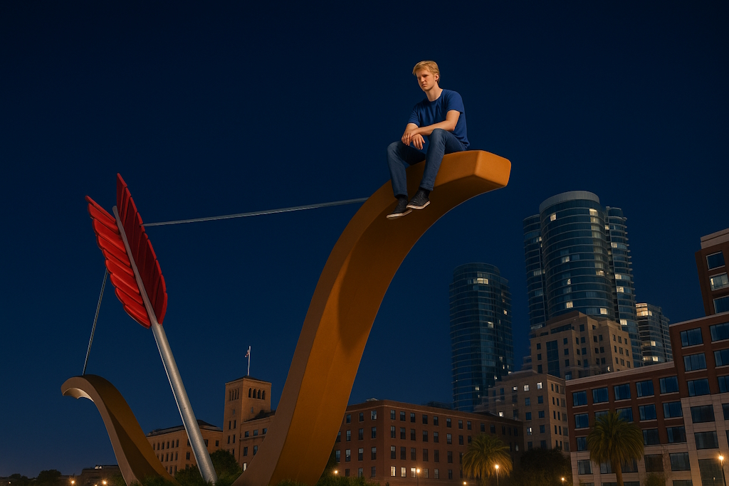Leo saß auf der Schulter des Bogens – einer riesigen Skulptur, die Eros darstellte, wie er einen Pfeil in die Erde schoss, um sie fruchtbar zu machen. Die Uferpromenade in der Nähe des Embarcadero war menschenleer. Nur eine leichte Brise, die von der Bucht herüberwehte, war der Begleiter des jungen Wächters.