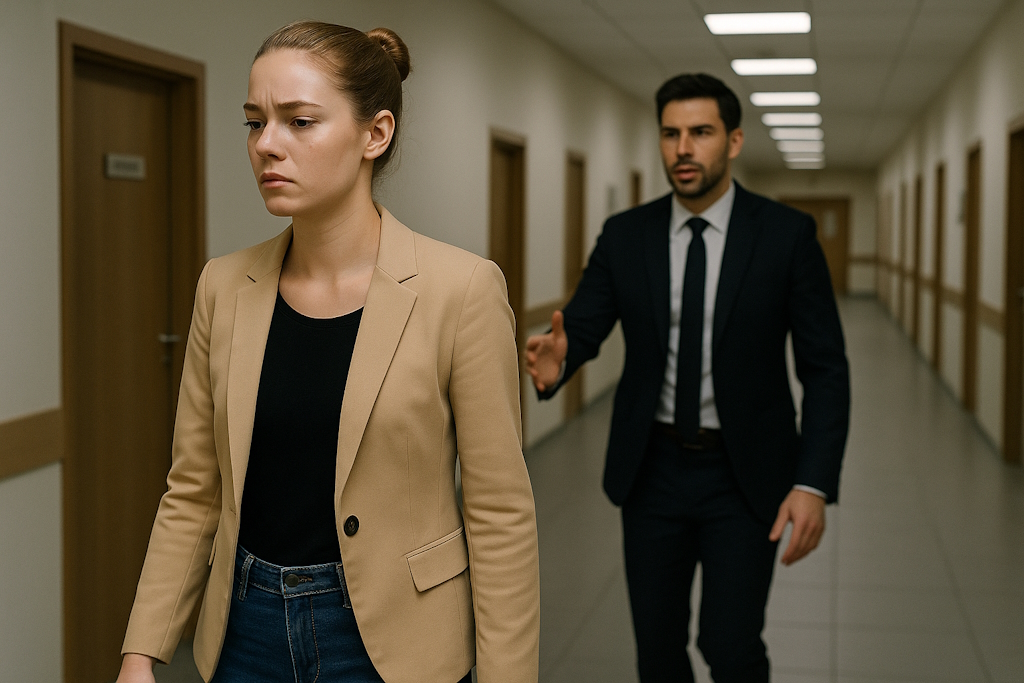 Die Neugier gewann die Oberhand und das Mädchen beschloss, sich dem Büro des Psychologen zu nähern, als der Gast den dritten Stock erreichen würde. Sie huschte zu den Treppen und traf genau im richtigen Moment ein.