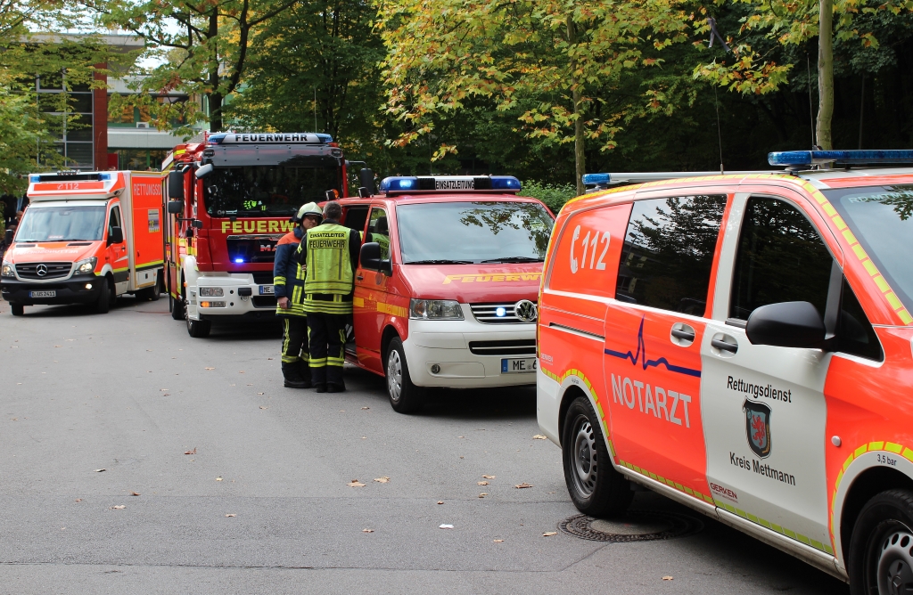 So wird ein Einsatzkonzept ausgelöst, in das mehrere Feuerwehren und Hilfsorganisationen aus dem Kreis Mettmann eingebunden sind. Darüber hinaus wurden weitere Rettungsmittel aus umliegenden Städten angefordert. Sieben Notärzte, darunter der Leitende Notarzt des Kreises Mettmann, waren im Einsatz.