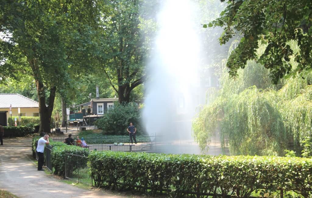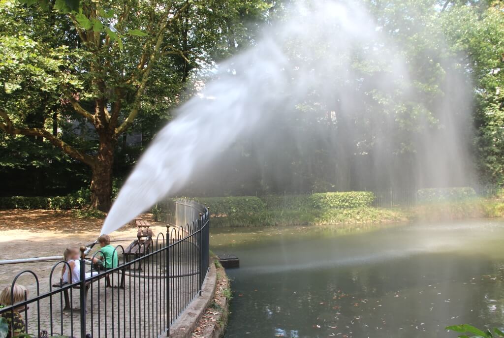 In Gräfrath sah man schließlich in der Parkanlage an der Gerberstraße akuten Handlungsbedarf. „Das Wasser kühlt und da es im hohen Bogen reinkommt, wird der Teich aufgewirbelt und es kommt Sauerstoff rein. Wir haben das zu einem recht frühen Zeitpunkt gemacht, um der Sache auch etwas vorzubeugen für das Wochenende“, erklärte Offer. Es sei nicht auszuschließen, dass es auch bei anderen städtischen Teichen im Stadtgebiet zu derartigen Hilfsaktionen kommen wird. So oder so, die Hitzewelle hat die Klingenstadt nach wie vor fest im Griff. Und es ist zumindest derzeit kein Hinweis auf Abkühlung in Sicht.