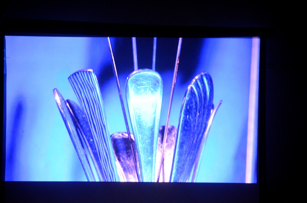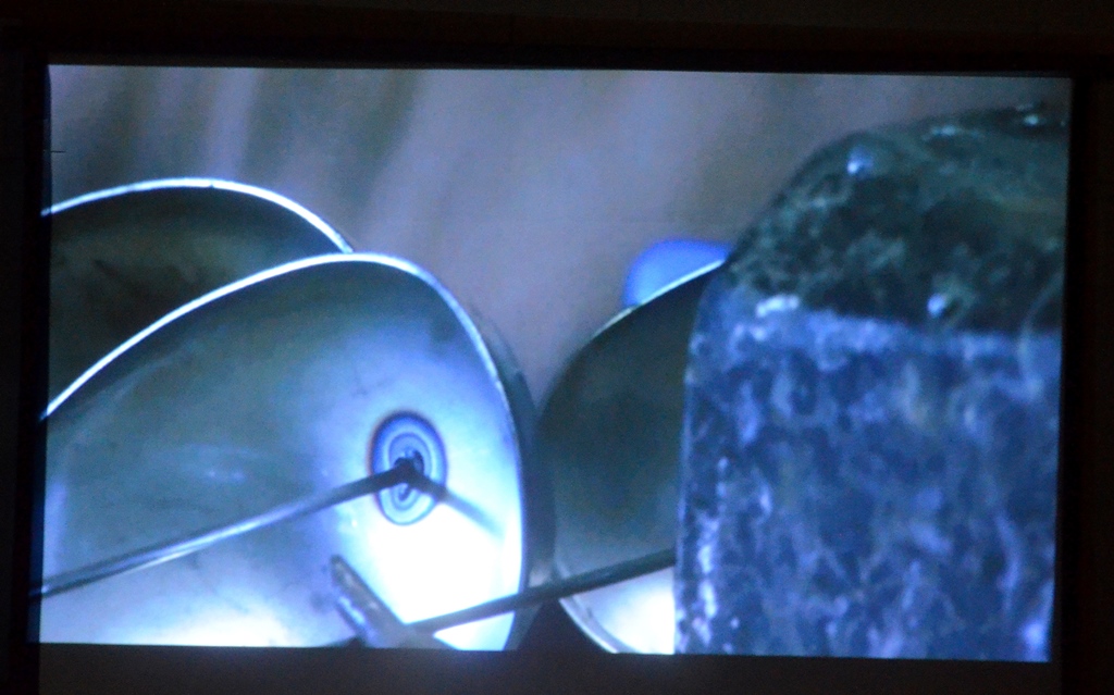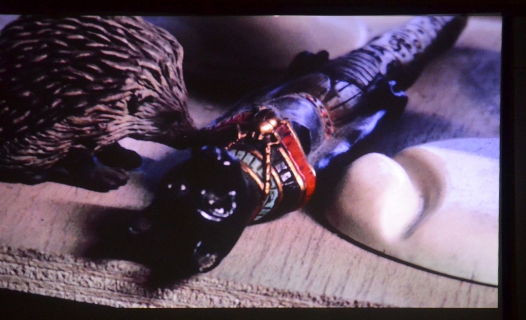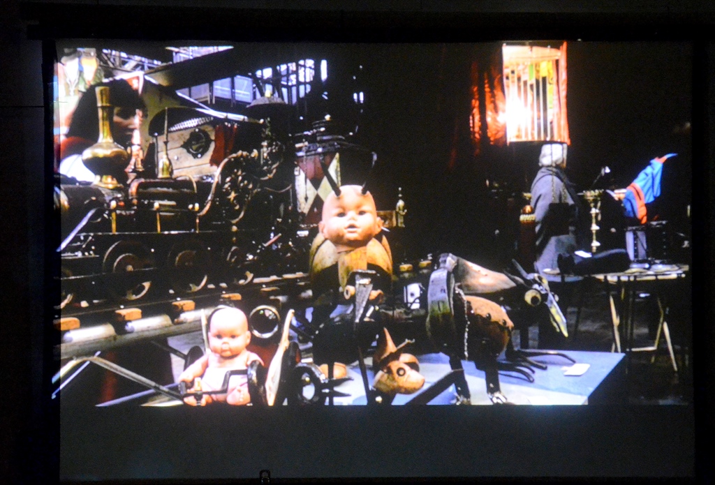 Nach einer kurzen Einleitung mit Ausschnitten über das letzte Steampunk-Festival geht’s los. Peter Amann hämmert, schraubt, schweißt. Alte, wertlos gewordene Dinge, manchmal Schrott, erwachen bei ihm zu neuem Leben. In alten Scheren, Riesenschrauben, Maschinenteilen sieht er verborgene Wesen und schenkt ihnen ein neues Dasein. Technische und märchenhafte Elemente treffen aufeinander. Die Figuren, skurril, doch in ihrer Eigenart realistisch anmutend, wirken liebenswert.