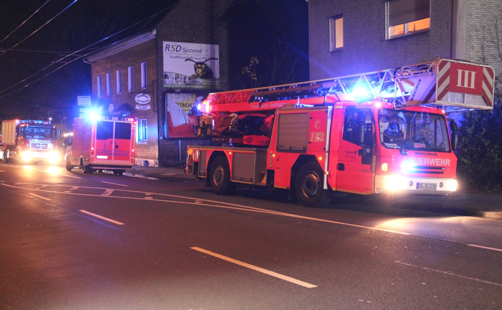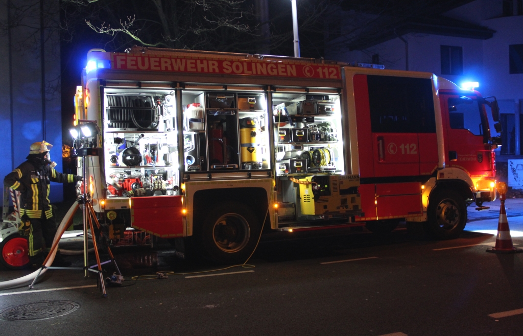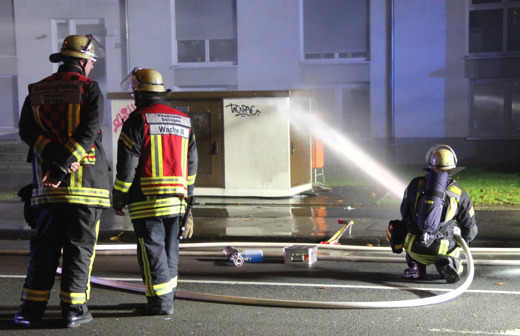 SOLINGEN (red/bgl) – Am späten Samstagnachmittag wurde die Feuerwehr zu einem Brandeinsatz zur Focher Straße alarmiert. Das Einsatzstichwort lautete „Brand in elektrischer Anlage – Rauch aus Transformatorstation“. Hierzu rückte neben zwei Löschfahrzeugen und einer Drehleiter auch der Abrollbehälter-Sonderlöschmittel aus.
