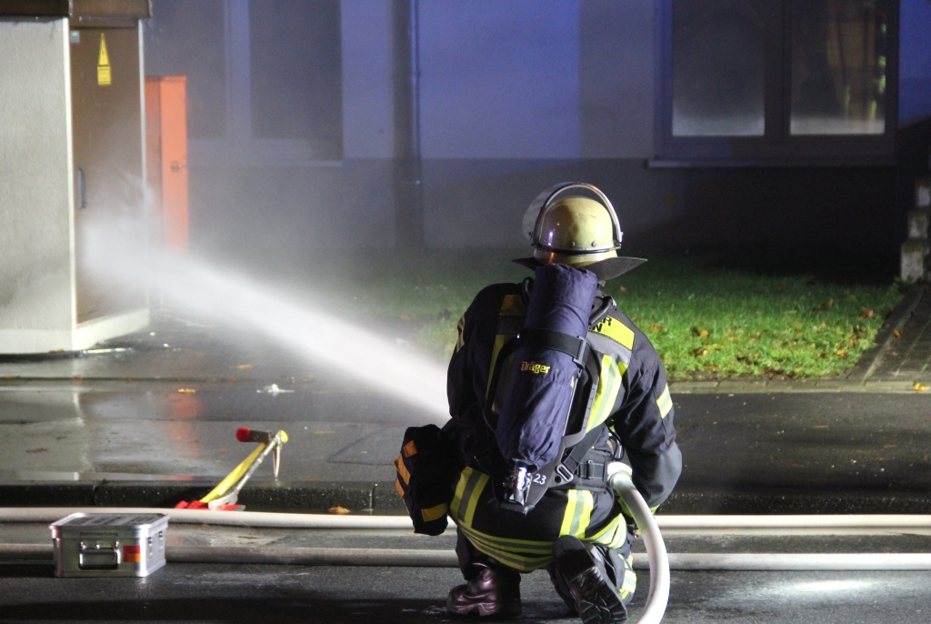 Vor Ort brannte es in einer freistehenden Transformatorstation in Höhe eines Supermarktes. „Es qualmte sehr stark und es kam auch zu Durchzündungen und zu Lichtbögen“, berichtete Einsatzleiter und Feuerwehrchef Dr. Ottmar Müller.