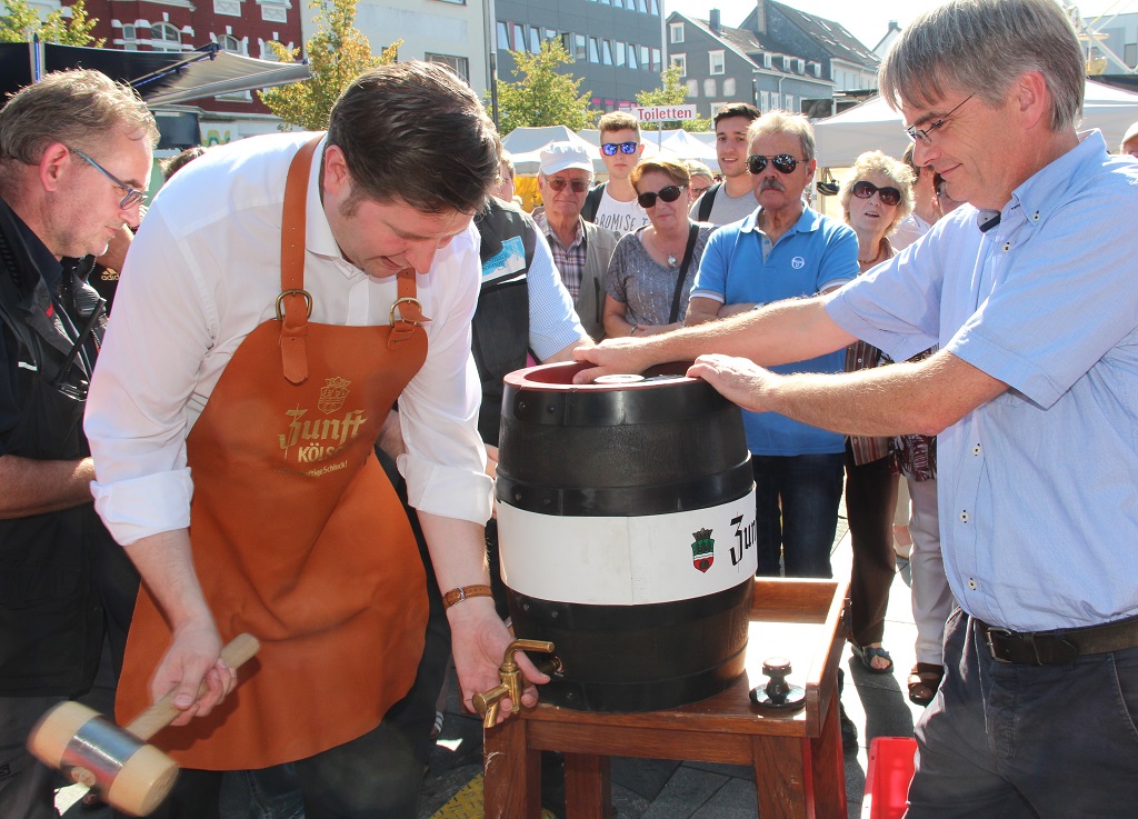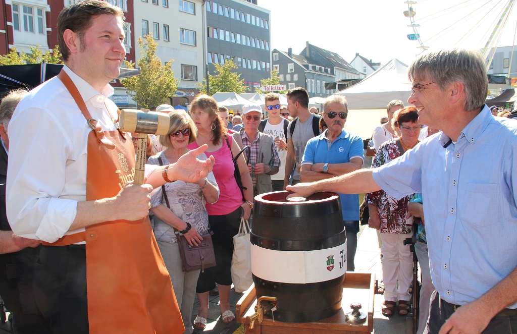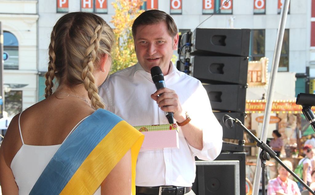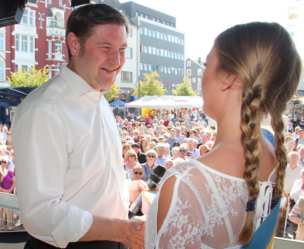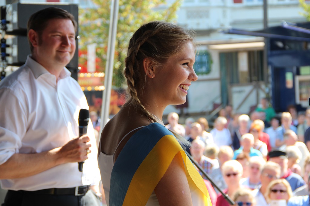 SOLINGEN (bgl) – Bei bester spätsommerlicher Witterung wurde am Freitagnachmittag auf dem Neumarkt offiziell der diesjährige Zöppkesmarkt eröfffnet. Oberbürgermeister Tim Kurzbach hielt eine launige Rede. Gekürt wurde außerdem das neue Miss Zöpfchen: Felicia Richter bekam die blau-gelbe Schärpe umgelegt. Wir waren dabei und haben Fotos gemacht. Klicken Sie sich durch unsere Galerie.