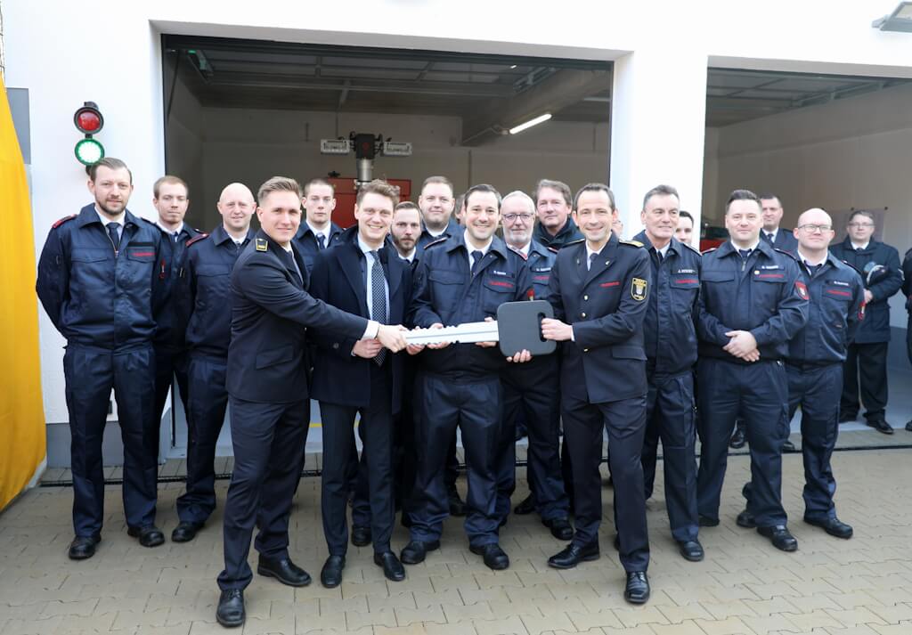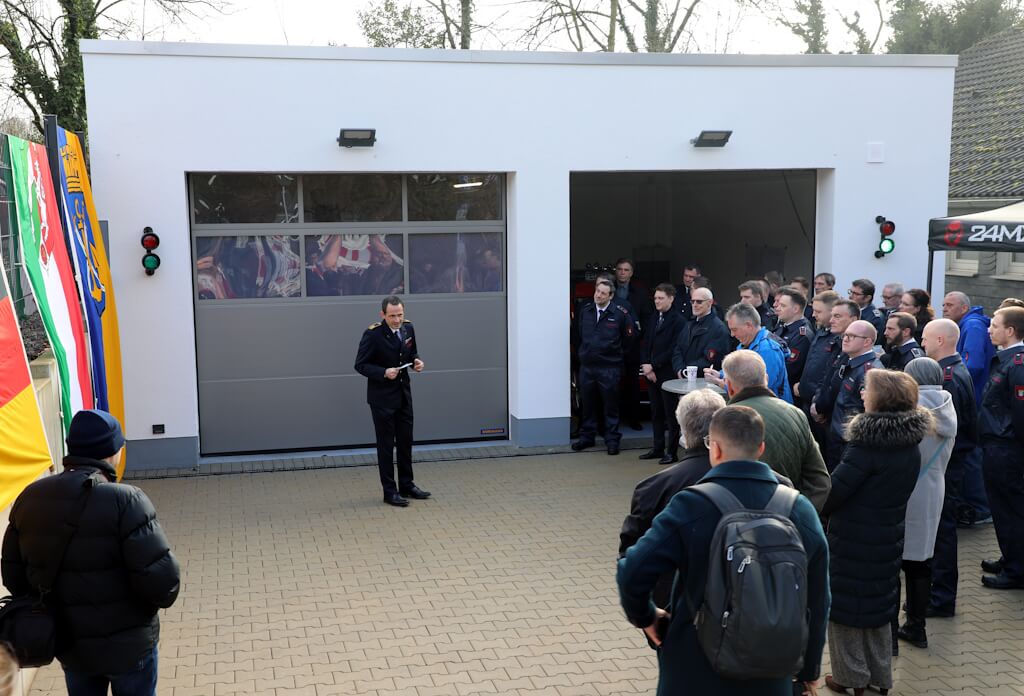 SOLINGEN (bgl) – Mit einer Feierstunde ist am Samstagnachmittag der Erweiterungsbau am Gerätehaus der Löscheinheit 8 in Solingen-Burg offiziell übergeben worden. Feuerwehrleiter Sebastian Wagner ordnete die Maßnahme als gezielte funktionale Verbesserung für einen besonderen Standort ein, vor allem mit Blick auf die vielen medizinischen Ersteinsätze der Einheit. Zur Feierstunde kam unter anderem Oberbürgermeister Daniel Flemm nach Oberburg, um den symbolischen Schlüssel an die Freiwillige Feuerwehr zu übergeben.