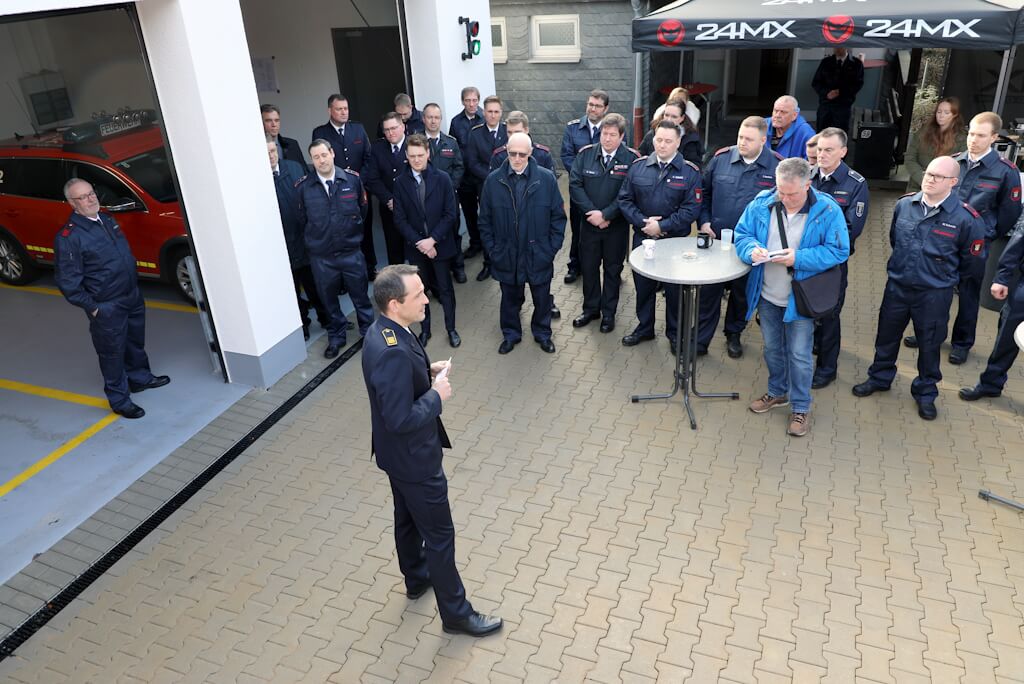 Die Gesamtkosten bezifferte Sebastian Wagner auf rund 380.000 Euro. „Eben nicht nur für das Gebäude, sondern auch für das Außengelände mit. Da ist relativ viel gemacht worden“, sagte er und verwies auf die notwendigen Stützwände. „Stützwand an der Seite, Gewichtsstützwand nach hinten.“ Wegen der Hanglage sei bewusst kein Fertigbau errichtet worden, „sondern ein ordentlicher Massivbau, sehr, sehr stabil ausgeführt“, erklärte Solingens Feuerwehrchef.