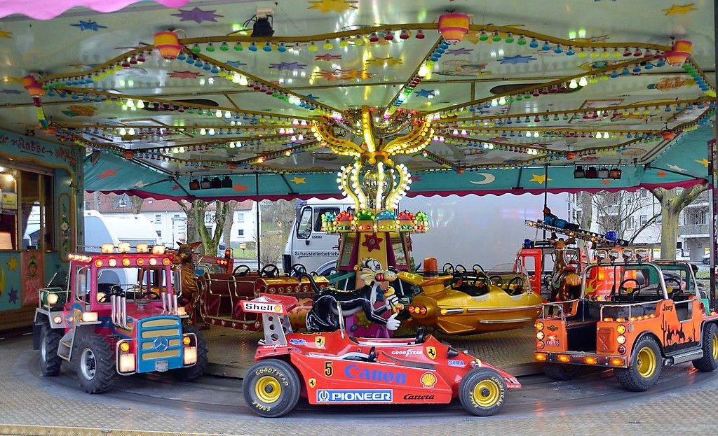 Mitten im Zentrum steht der heiß begehrte Autoskooter. Die anderen Attraktionen sind kreisförmig drumherum arrangiert. Ein klassischer Rundlauf, bei dem man an allen Ständen vorbeikommt. Gleich vorne lädt die Villa Wahnsinn zum Eintreten ein. Der Angriff auf die Lachmuskeln ist garantiert. Für die Kleinen gibt es neben dem Kinderkarussell den Saturnflieger und den Miniskooter. Auf die Jugendlichen warten die beliebten Fahrgeschäfte „Musikexpress“ und „Break Dance“ mit rasantem Tempo und toller Musik. Die komplette Familie findet Platz in der Familienachterbahn Crazy Jungle.