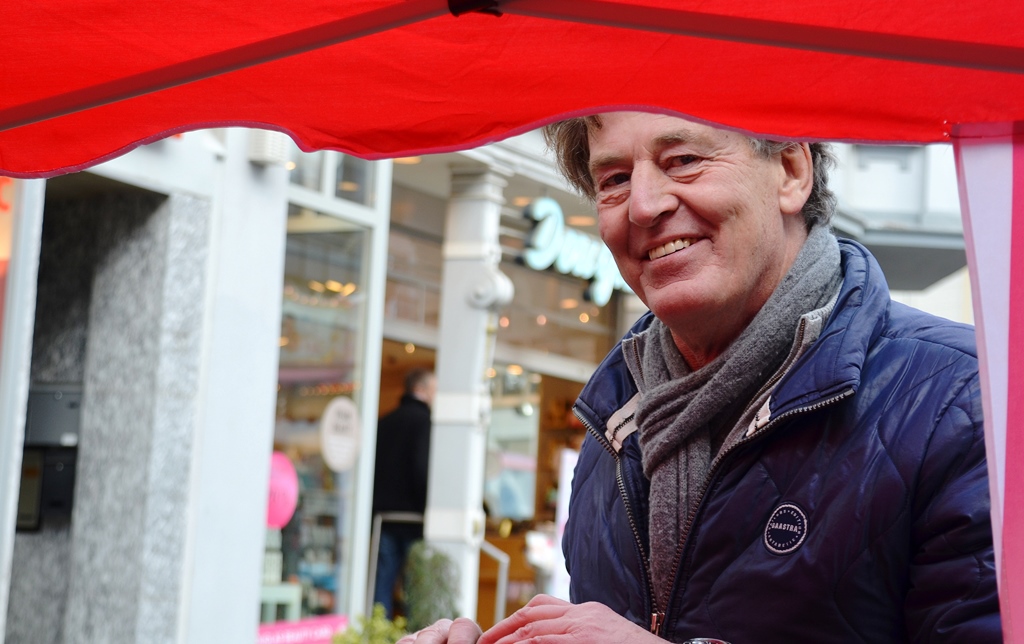 Um 13 Uhr öffnen die Geschäfte ihre Türen. So mancher hat sich etwas Besonderes für diesen Tag ausgedacht. Am Markt ist die Solinger Gruppe 1424 von Amnesty International wieder mit einem Stand vertreten. Für die Damen gibt es Rosen. „Wir sind jedes Jahr zum Internationalen Weltfrauentag hier“, erklären die vier Mitarbeiter. „Damit möchten wir auf unser Anliegen aufmerksam machen. Wir setzen uns aber nicht nur für Gruppen ein, sondern helfen überdies in einzelnen Fällen.“