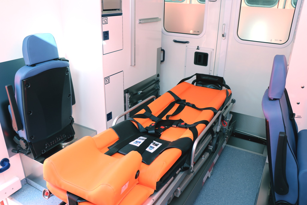 Ein modernes Einzugssystem erleichtert zudem das Öffnen und Schließen der Fahrzeugtüren. Im Aufbau des Rettungswagens wird die Medizintechnik jetzt an einer Wand befestigt, die höhenverstellbar ist. Größere Personen brauchen sich nicht mehr bücken, der Rücken der Mitarbeiterinnen und Mitarbeiter wird geschont.