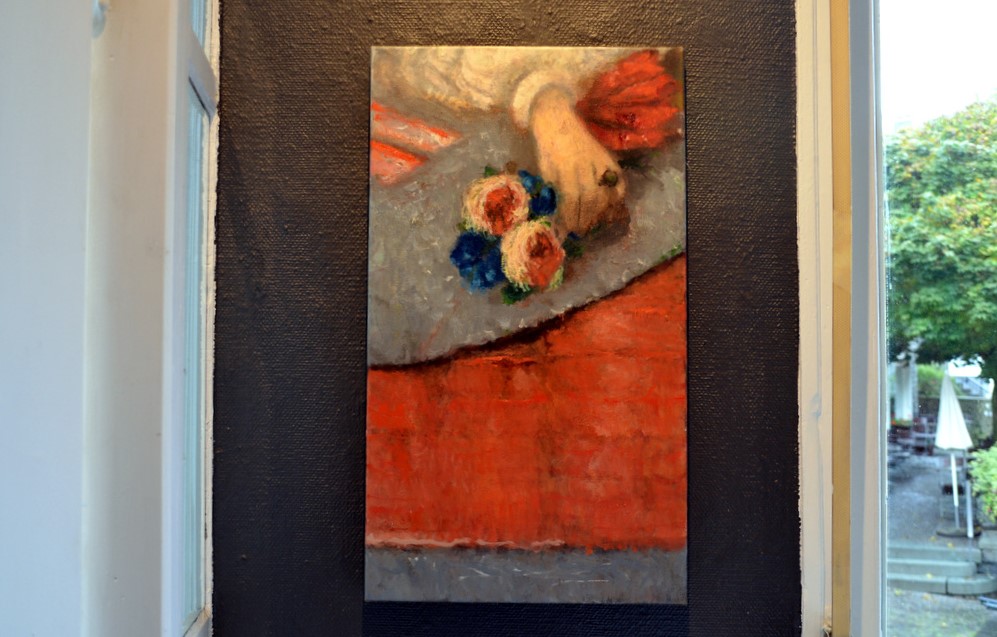 Alle Darstellungen sind seit Herbst 2018 entstanden. Bei manchen ist die Farbe noch nicht einmal vollkommen getrocknet. „Ich arbeite immer wieder an meinen Bildern.“ Hier hält der Künstler es mit Picasso: „Ein Bild ist erst fertig, wenn es verkauft ist.“ Bis dahin findet Ioan Iacob immer wieder etwas zu verändern. Aus manchen Gewändern hat er ein Detail herausgezogen und in einem separaten Werk festgehalten. Jetzt überlegt er gerade an einem Kleid, das auf mehrere Leinwände verteilt wird.