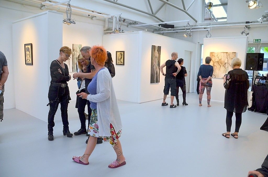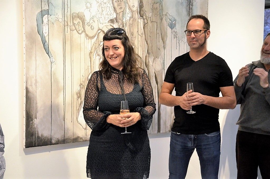 „Janine Werner ist selbst ein Gesamtkunstwerk“, betont Galeristin Astrid Kirschey in ihrer Laudatio. „Sie verkörpert gleich eine ganze Lebensform. Janines Fokus liegt auf der menschlichen Figur. Aus einem spielerischen Umgang heraus entstehen ihre Figuren. Sie sieht in Skeletten und Knochen nicht einfach den Tod.“