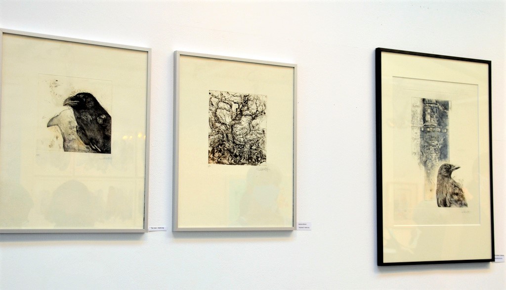 Barbara Held bediente sich bei ihrem Bildmotiv einer Fotografie von Paola Diva. Ihr Zweiplattendruck stellt ein Eselchen im Boot dar. Der lasierende Abdruck der gemaserten Platte weckt Assoziationen zu Wasser. Der Rabe taxiert den Betrachter intensiv mit seinen klugen Augen. Marlene Mintert nennt diese Radierung „Der Aufpasser“. Die Farbradierung „Alles im Griff“ von AnneLi Schröder ist eine scharfe satirische Entlarvung menschlicher Überheblichkeit und gibt zu erkennen, dass wir eben nicht alles im Griff haben.