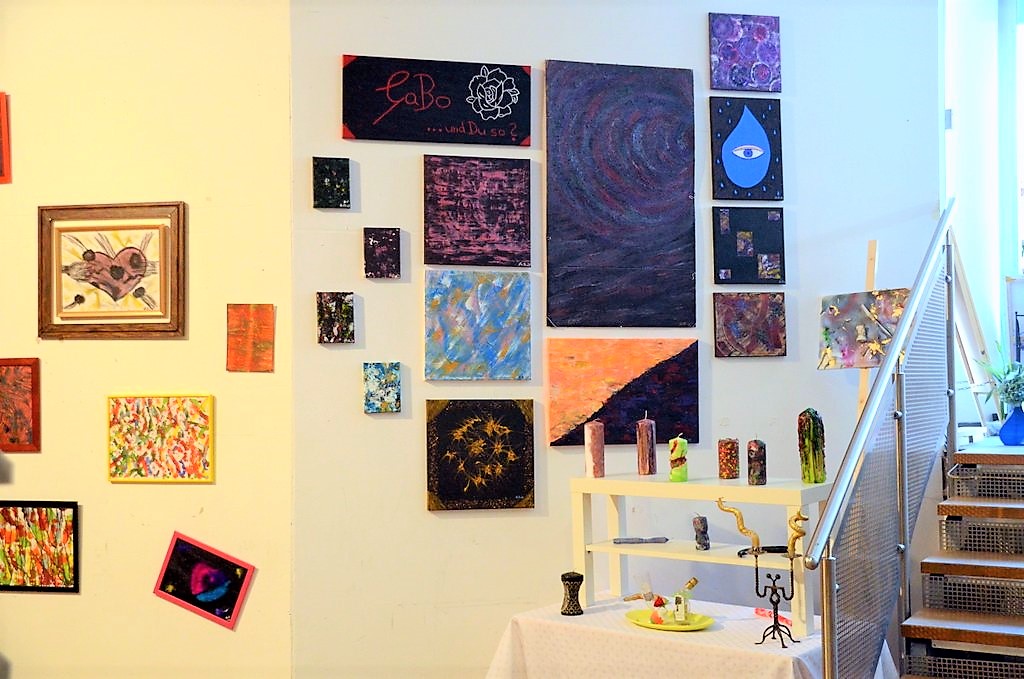 Gerade frisch an Bord ist die KünstlerKolonie Dönberg (KKD). Die Kolonie ist ein freier Zusammenschluss von Künstlerinnen und Künstlern aus den unterschiedlichsten Werkbereichen. Die Mitglieder unterstützen sich gegenseitig bei ihrer künstlerischen Arbeit und der Organisation von Ausstellungen. Kennengelernt hatten sich die beiden Gruppen bei einer Vernissage in Wuppertal und waren seitdem in Kontakt geblieben. Vier KKD-Mitglieder zeigen im September hier in der Galerie ihre Kunstwerke, im Oktober wird gewechselt. Neben der klassischen Malerei findet man von Hand genähten Modeschmuck, Holzobjekte und Skulpturen.