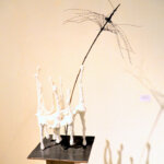 - Gesellschaft & Kritik: Christina Koesters Installation „JEMANDEN IM REGEN STEHEN LASSEN“ zeigt einen Rettungsschirm, der trügerisch ist – ein Sinnbild für zerbrochene Illusionen. Michael Bauer-Brandes mahnt mit seiner filigranen Stahlskulptur „Menschengemacht“ vor dem riskanten Tanz am Abgrund.