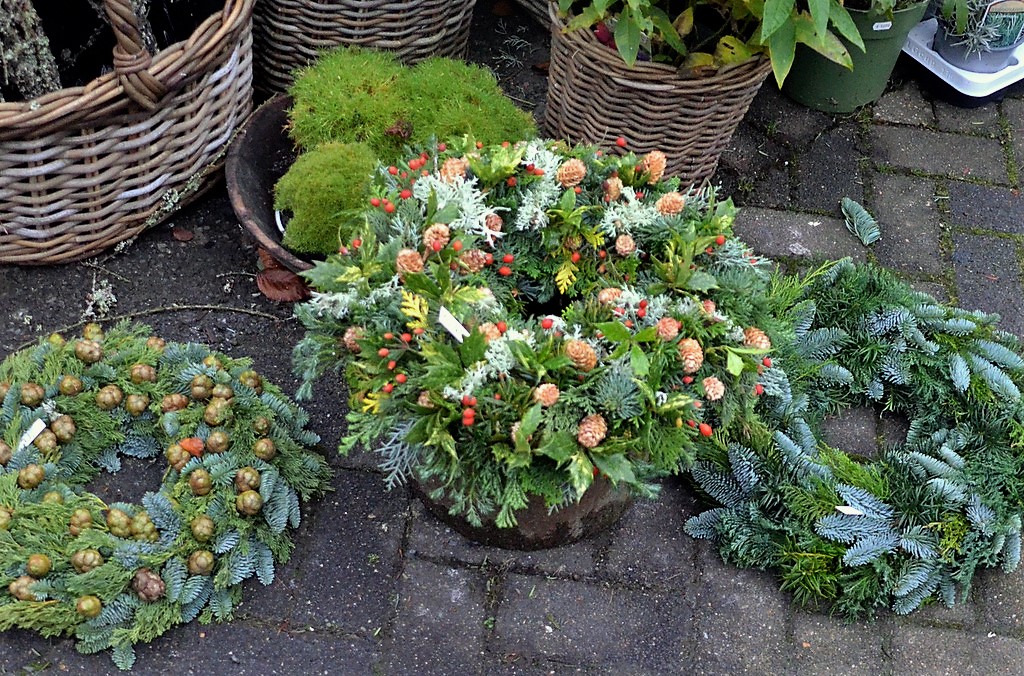 Wieder einmal hatten Marcus Vogel und Thorsten Ulbrich unermüdlich und mit viel Liebe zum Detail am adventlichen Outfit gearbeitet. Bunte Kränze für Balkon und Garten, dekorativ mit viel frischem Grün kombiniert, boten einen hübschen Blickfang. Klassische Adventskränze in vielen Farben verströmten ihren Duft aus frischem Grün und Harz. Das Ambiente in den drei Ausstellungsräumen versetzte jeden in eine vorweihnachtliche Stimmung.