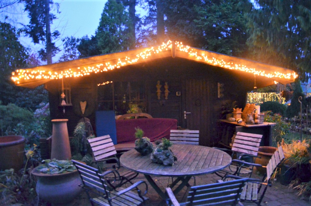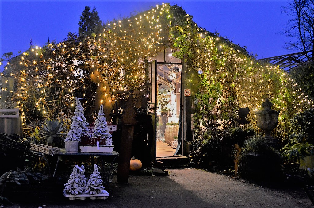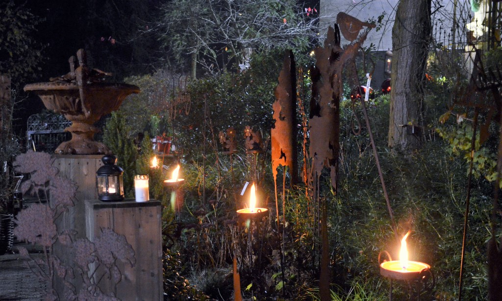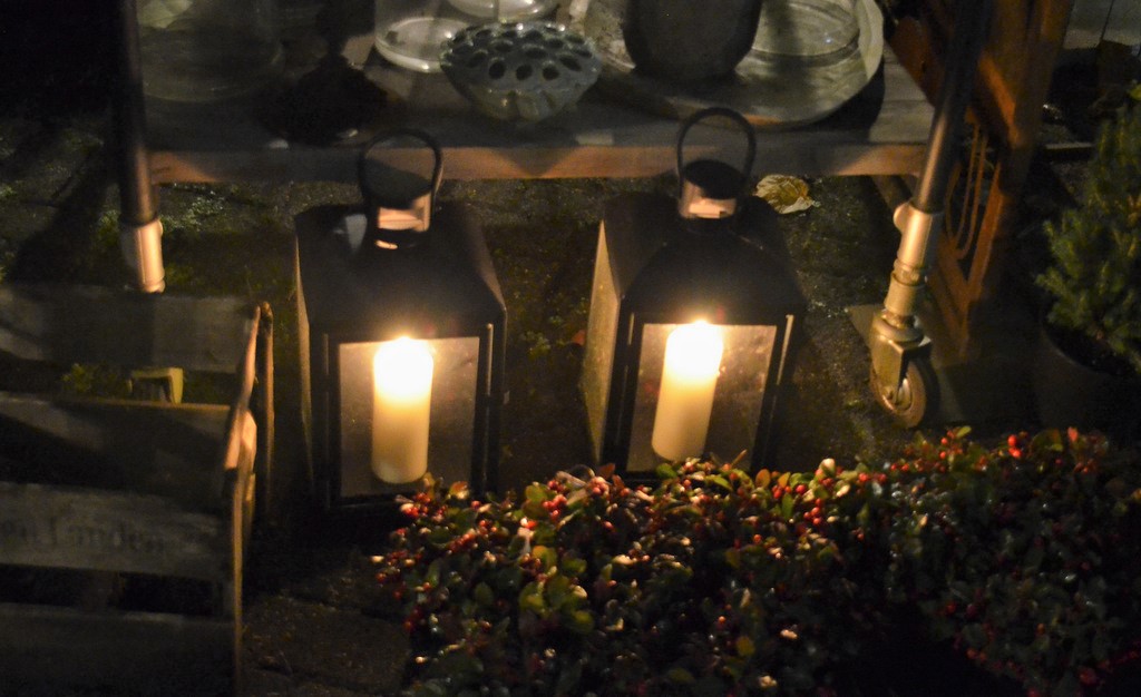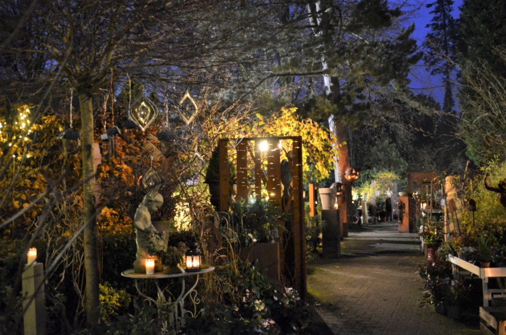 Während die 12 Gartenzimmer bereits im Winterschlaf liegen, ist der vordere Teil der Anlage mit unzähligen Lichtern geschmückt. Bäume und Sträucher tragen Kleider aus Lichterketten. Feuerschalen säumen den Weg für die Besucher. Überall verbreiten Kerzen besinnliche Atmosphäre. Ein alter Ofen bullert vor sich hin. Das knackende Holz und die in die Luft steigenden Funken bringen klassisches Weihnachtsfeeling.