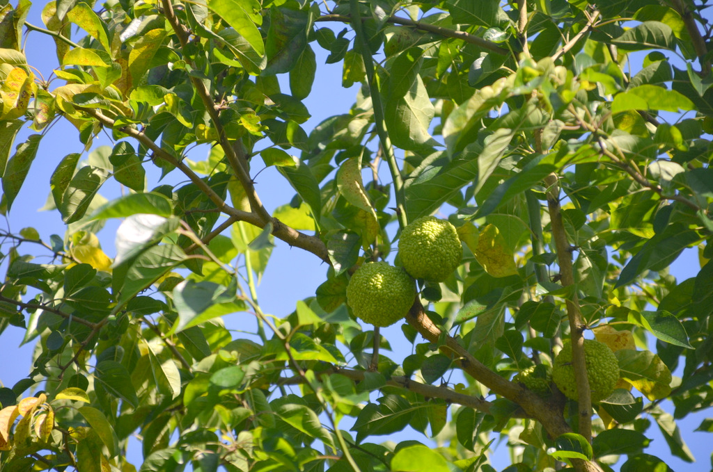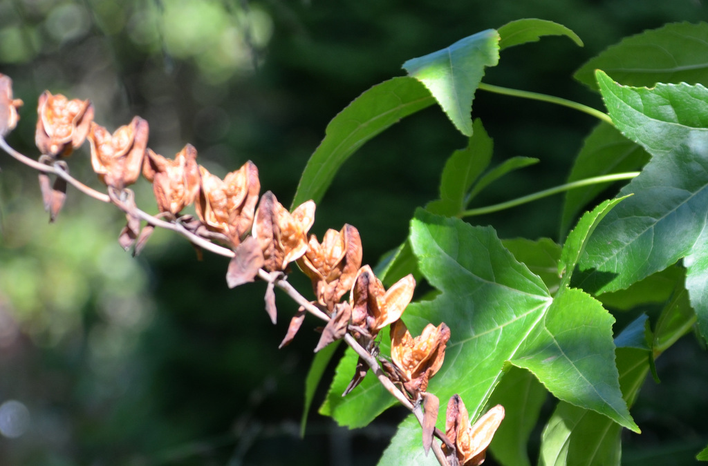 Der Milchorangenbaum ist ein stacheliger Vertreter der Maulbeerfamilie. Seine grünen kugeligen Früchte verströmen einen leichten Orangenduft, sind aber ungenießbar. Die cremeweißen, zart duftenden rispenartigen Blütenstände des Strauches „Sieben Söhne des Himmels“ stehen schon, wie der Name sagt, meist zu siebt zusammen. Der Name des Strauches ist eine wörtliche Übersetzung aus dem Chinesischen. Seine Hauptblütezeit dauert von Ende August bis Ende Oktober. Der Strauch lässt sich wunderbar als Solitär pflanzen. Bei Vollreife zeigt er zauberhafte leuchtend rote Früchte. Insekten werden von ihm magisch angezogen.