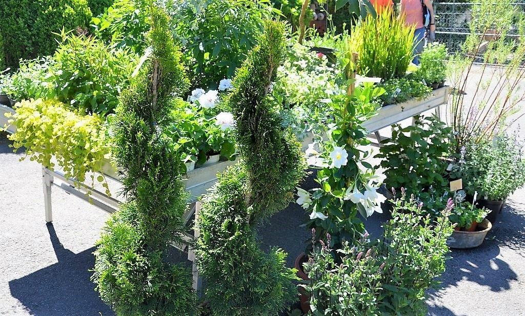 Neben dem klassischen Sommerflor, den Stauden und Balkonpflanzen, die zu dieser Jahreszeit besonders gefragt sind, gibt es so manche Raritäten zu entdecken, wie den Zier- Rhabarber, eine ansehnliche Solitärstaude. Bemerkenswert ist auch der Reispapierbaum (Tetrapanax) mit seinen großen gezackten Blättern. Der Lebkuchenbaum, ein sommergrünes Gehölz, duftet seinem Namen entsprechend nach Gebäck oder Lebkuchen.