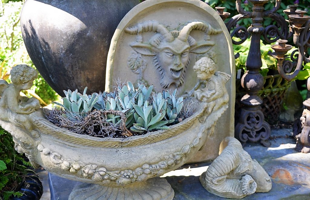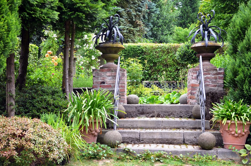 Auf rund 8.000 Quadratmetern blühen Stauden, plätschern Springbrunnen. Leuchtend bunte Blumen wechseln mit dunkellaubigen Gewächsen oder dekorativen Gräsern. Die Gartenanlage von Thorsten Ulbrich und Marcus Vogel ist auf dem Gelände einer alten Gärtnerei entstanden (wir berichteten). Mittlerweile wachsen hier rund 1.500 Arten von einheimischen und exotischen Gehölzen, Pflanzen und Gräsern. Schmiedeeiserne Tore und Rundbögen führen in themenbezogene „Gartenzimmer“. Große Steinskulpturen säumen den Weg. Zwischen Sträuchern kommen Fundstücke zum Vorschein. Sie wirken, als seien sie dort gewachsen. Überall stößt man auf Unerwartetes. Gerade das macht den besonderen Reiz der Anlage aus.