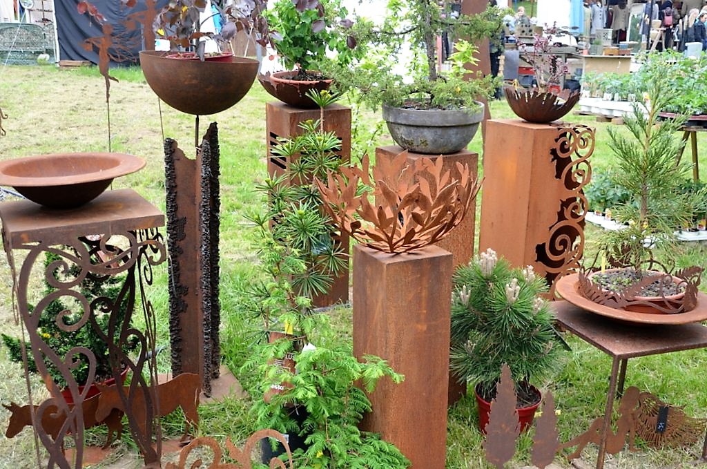 Am Stand vom „Rostigen Garten“ finden Besucher Gartendekoration und Gartenaccessoires. „Wir sind jedes Jahr hier und immer am gleichen Platz.“ Die Stammkunden sind darüber sehr froh. Sie müssen nicht lange suchen.