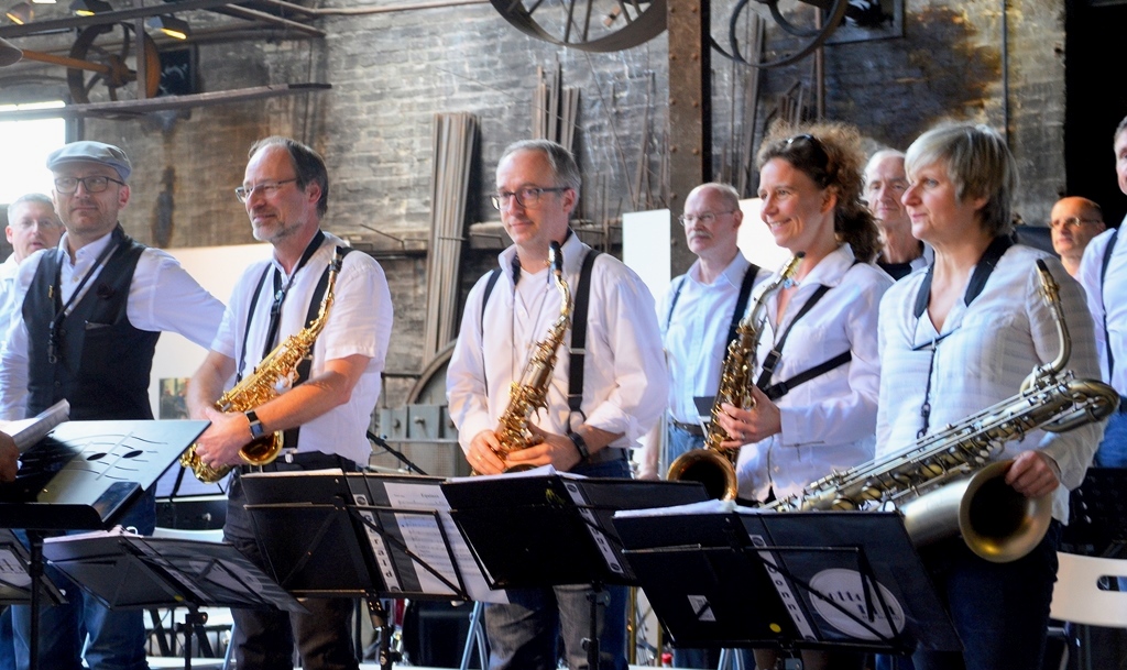 Im Schlüssellager kommen Streich- und Tasteninstrumente zum Einsatz. Auch Bläser und Sänger zeigen in abwechslungsreichen Darbietungen ihr Können. Den Auftakt in der Blechschneiderei bildet die Kotten Klub Big Band unter Leitung von Saxophonist Klaas Voigt. Der studierte Jazz- und Popmusiker unterrichtet einen Tag in der Woche in der Musikschule und hat 2013 die Gruppe ins Leben gerufen. Die Band bietet ein facettenreiches Repertoire von Jazz über Latin bis Rock.