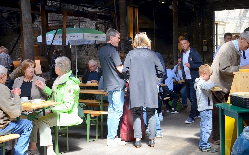 Zwischen den einzelnen Auftritten kann man sich mit Kaffee, Kuchen und Softdrinks stärken. Der Förderverein des Industriemuseums bietet leckeren selbst gebackenen Kuchen an. Die Nachfrage ist groß.