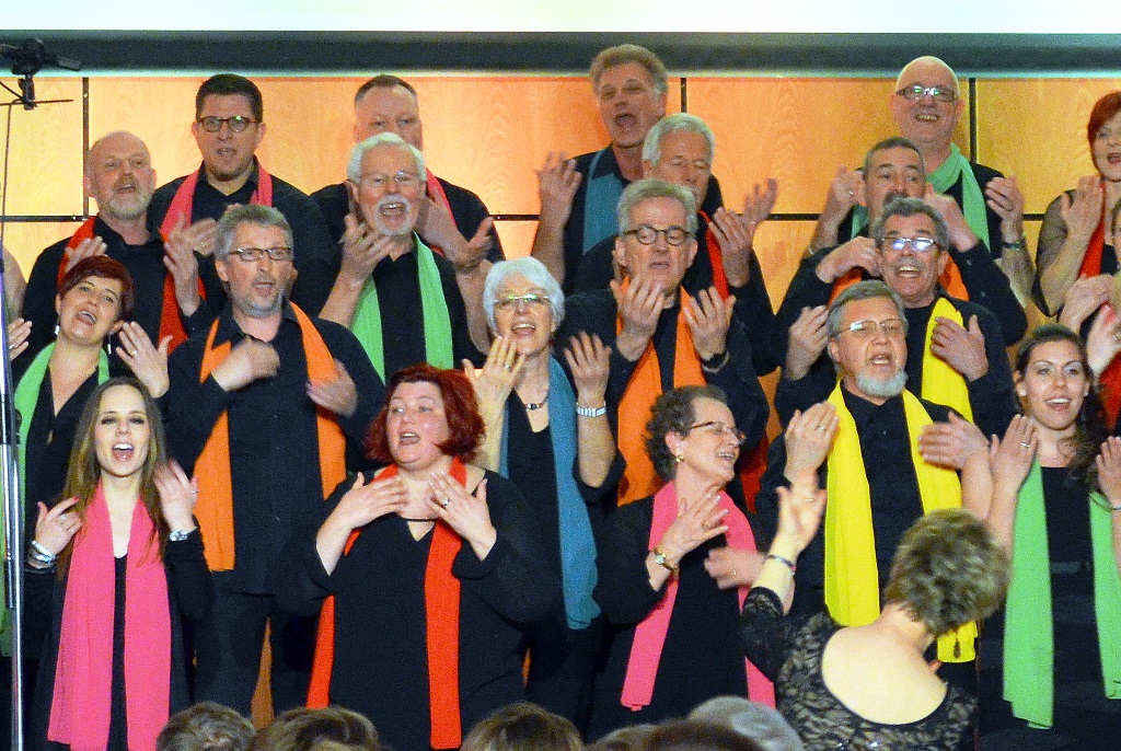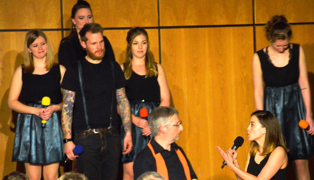 Bei einer so großen Familie gibt es jede Menge Geburtstage. Chormitglied Heike stand trotz ihres Ehrentages mit auf der Bühne. Sie wurde belohnt mit einem 70-stimmigen Happy Birthday.