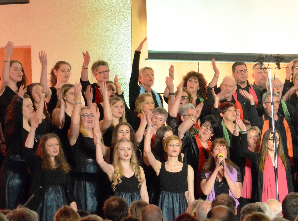 Unter der Leitung von Elisabeth Szakács lieferten die stimmgewaltigen Chöre ein Gospelkonzert der Extraklasse. Zwei Stunden lang zeigten sie in 18 fantastisch dargebrachten Songs die ganze Bandbreite ihres Könnens. Temperamentvolle rhythmische Darbietungen wechselten mit leisen besinnlichen Tönen. Gospels, mit den unterschiedlichsten Musikstilen kombiniert, ergaben eindrucksvolle Interpretationen. Bei einigen Stücken stand der geistliche Aspekt im Vordergrund Andere luden mit ihrem Rhythmus zum Mitklatschen ein. Das taten die Zuhörer sehr gerne.