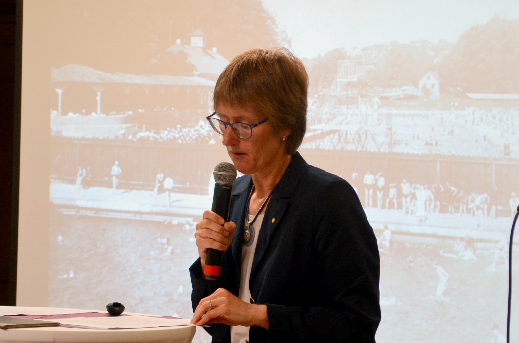 Dann gab Dr. Beate Battenfeld vom Bergischen Geschichtsverein einen Einblick in die historische Geschichte des Ittertals. „Schon in den 1890er Jahren wurde von dem anerkannt milden Klima gesprochen.“ Sie berichtete, wie Carl Friedrich Ern, Begründer der gleichnamigen Walder Rasiermesser-Firma, 1913 die Strandbadanlage aus eigenen finanziellen Mitteln, immerhin 600.000 Mark, bestritten hatte. Wie sich der Bau durch den Krieg verzögert hatte und dann doch endlich eröffnet werden konnte.