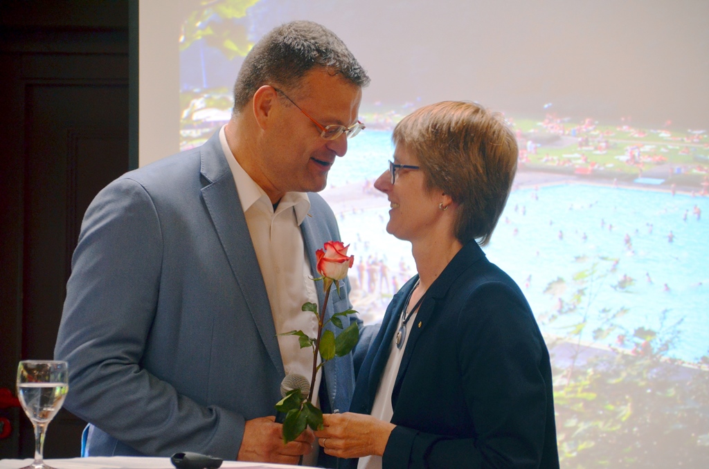 SOLINGEN (mh) – Neunzig Gäste aus Verwaltung und Politik trafen sich auf Einladung des Fördervereins Ittertal e. V. zur Hundert-Jahr-Feier des Freibades Ittertal. Pfarrer Bernd Reinzagen (Vereinsvorsitzender) begrüßte die Anwesenden. „Wir wollen heute zurückblicken auf hundert Jahre Geschichte. Außerdem möchte ich unseren zahlreichen Helfern und Sponsoren danken, ohne die diese Feier nicht möglich gewesen wäre.“