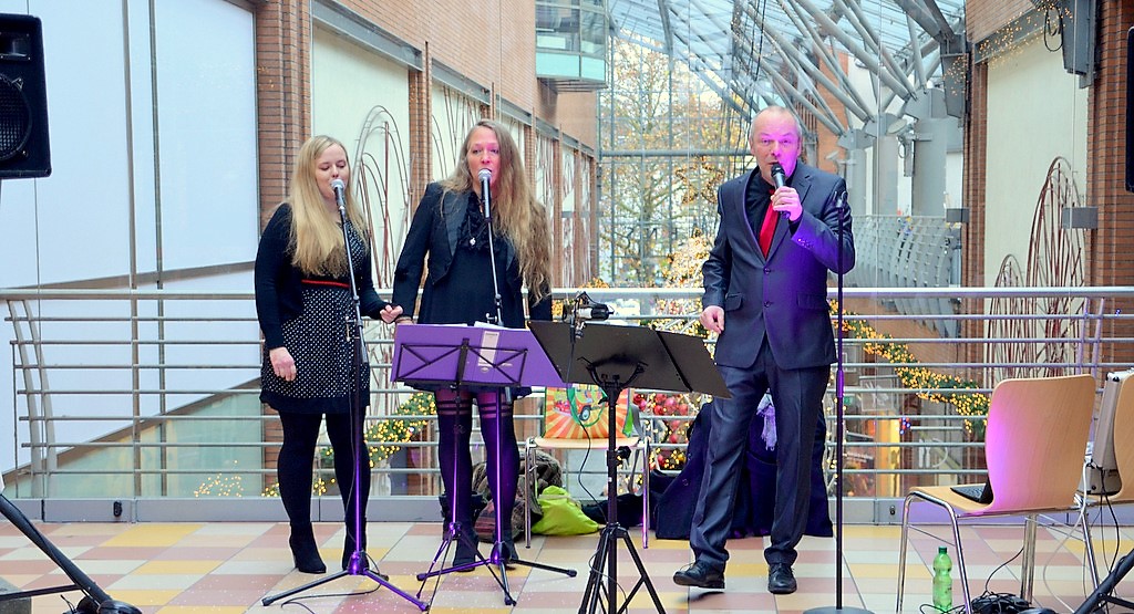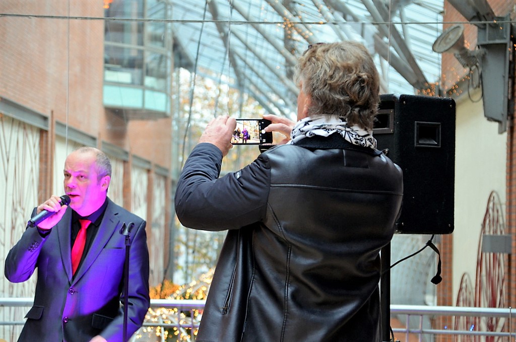 Während die einen schon nach Weihnachtsgeschenken Ausschau hielten, sahen andere den Künstlern bei der Arbeit zu. Musikalisch rissen Myers & The Tipsy Blondes mit ihrem Programm „Swing into Christmas“ die Besucher einfach mit, die dann begeistert zu weihnachtlichen Klassikern und Songs von Michael Bublé sangen und tanzten.