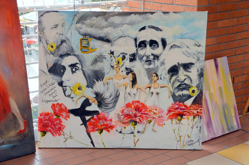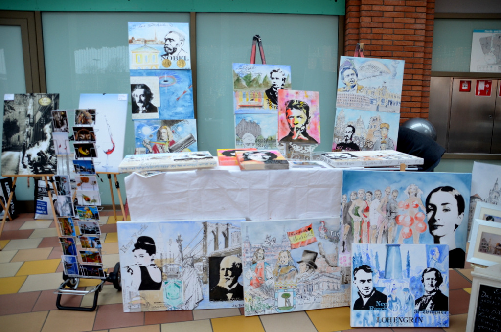 GastkünstlerInnen der Galerie Ruthmann boten auf Ständen oder in der Galerie selbst Encaustic, Schmucksachen und mehr an. Besonders begehrt waren die Kunstpostkarten, des surrealistischen Malers Lothar Ruthmann. Die bereits vergriffenen Karten werden in einer Neuauflage gemeinsam mit einem neuen Entwurf der Gesenkschmiede Henrichs auch auf dem Weihnachtsmarkt am 15. + 16.November am Fronhof erhältlich sein.
