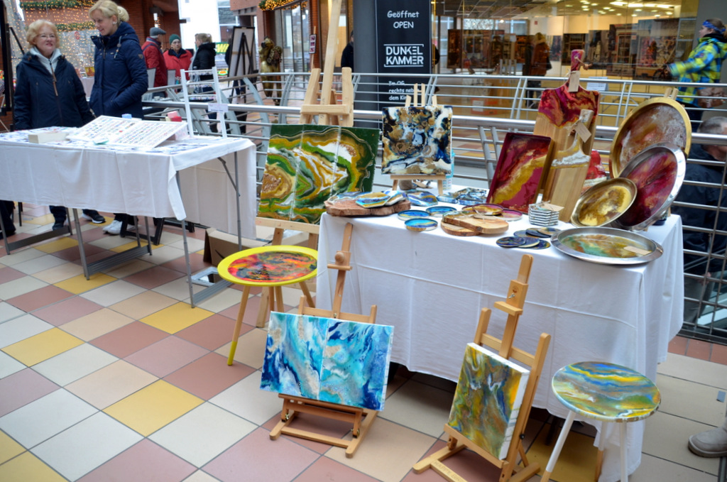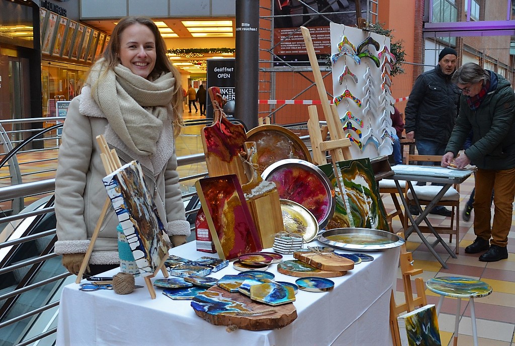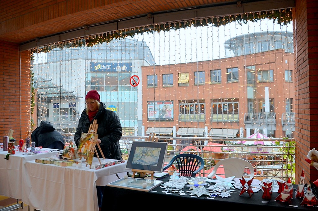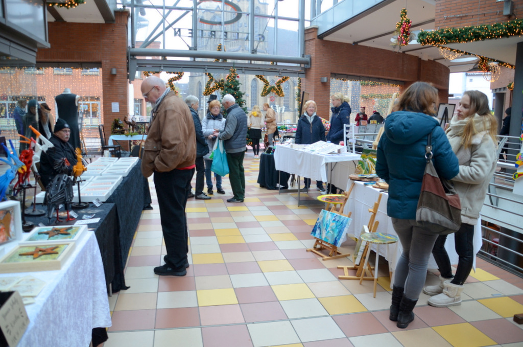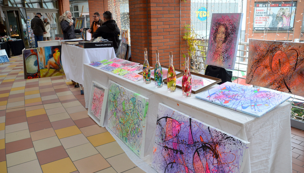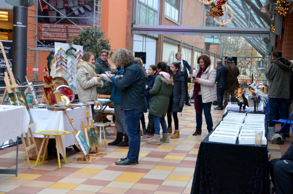 SOLINGEN (mh) – Reges Treiben herrschte am vergangenen Samstag in den Clemens-Galerien. Im Rahmen des city-art-projects hatte Organisator Timm Kronenberg wieder einen bunten und vielfältigen Kunst-Weihnachtsbasar auf die Beine gestellt. 50 Künstler zeigten in und vor den 18 Galerien einen Querschnitt ihrer Arbeiten. Viele Skulpturen, Kerzen, Magnetschilder oder Minibilder auf Staffeleien und andere liebevoll hergestellte kleine Kunstwerke luden zum Stöbern ein.