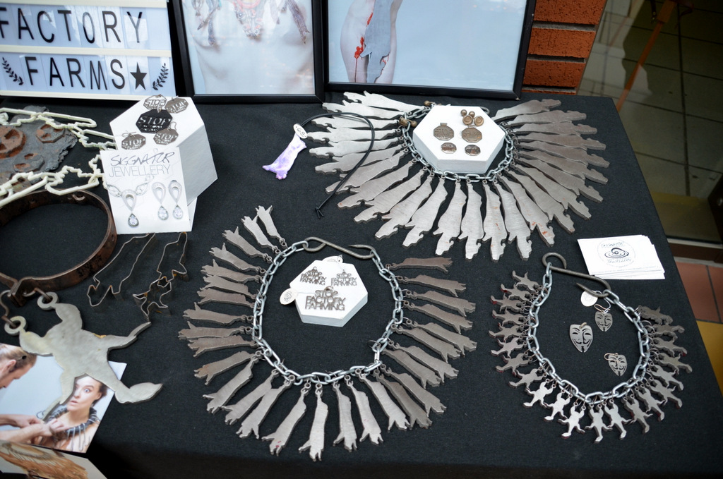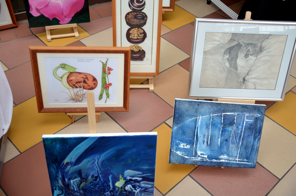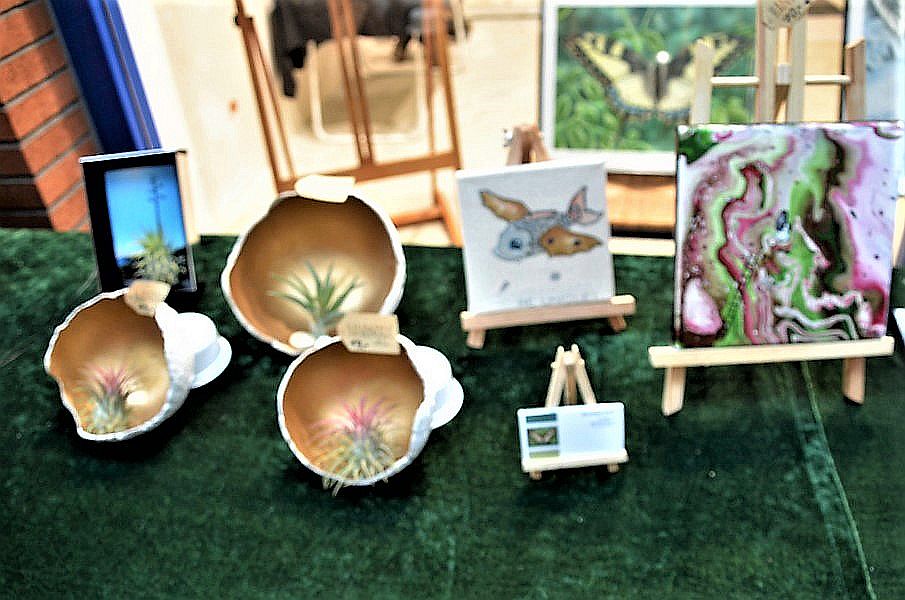 Auf den ersten Blick wirkten die Traumschädel von Mortimer Mac Brown etwas gruselig. Doch ihre leuchtenden Farben nahmen den Gebilden ihren Schrecken. „Des Mortimers Kunst“ befasst sich mit den Themen Dasein und Realität bzw. mit der Verzerrung der Realitäten. „Das wahre Dasein ist ja viel mehr als das, was wir von der Realität wahrnehmen.“ Die Schädel werden aus Gips gegossen und nach dem Trocknen mit Acryl bemalt und mit Klarlack überzogen. „Jeder einzelne Schädel birgt seinen eigenen Traum“, erklärte Mac Brown, der im wirklichen Leben auf den Namen Steven William Brown-Boyd hört. Seine kleine Tochter (3,5 Jahre) habe ihn auf die Idee gebracht, wie er lächelnd erklärte. „Meine Skelette oder Schädel sind nicht immer nur traurig oder böse, manchmal steckt auch Hoffnung darin. Das muss jeder für sich selbst bewerten.“